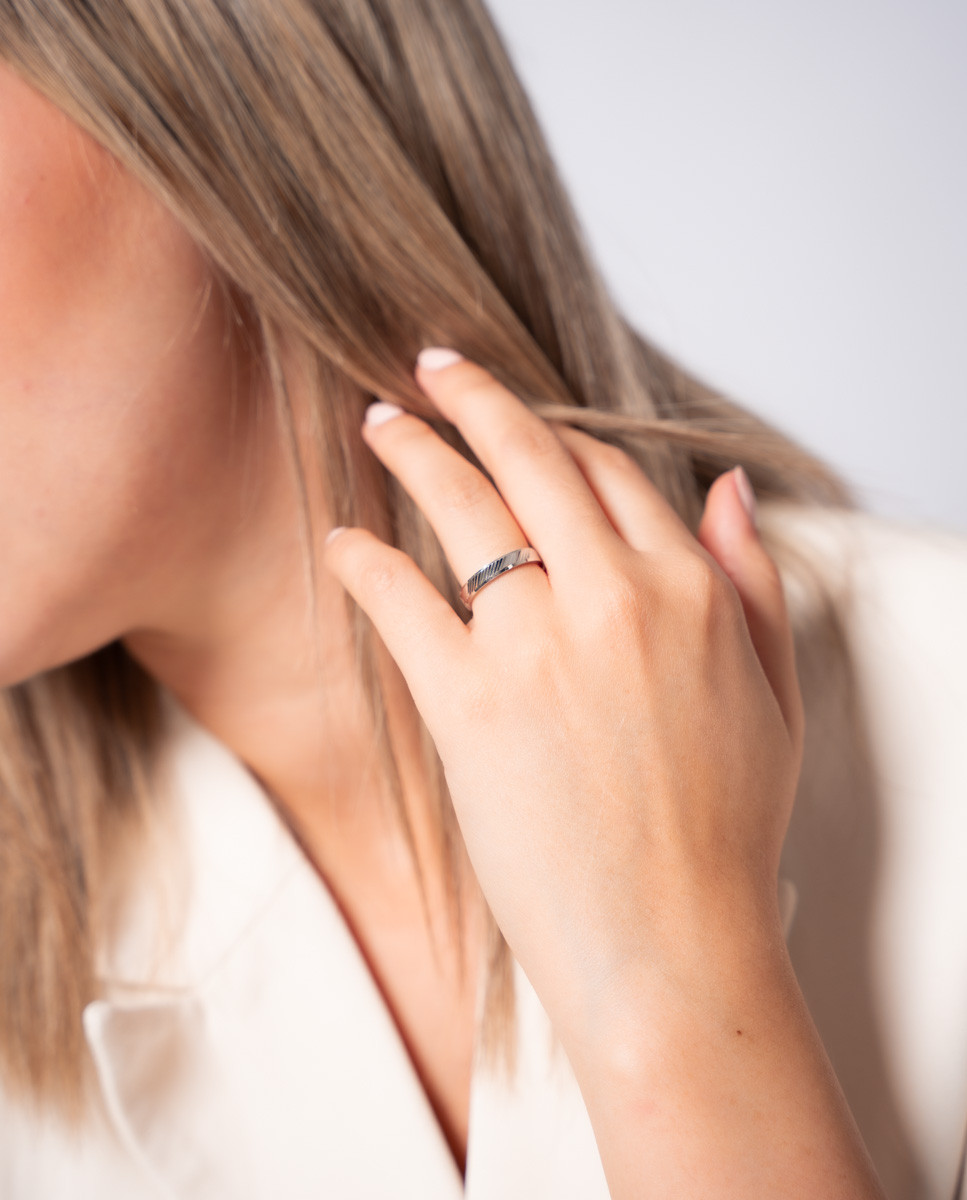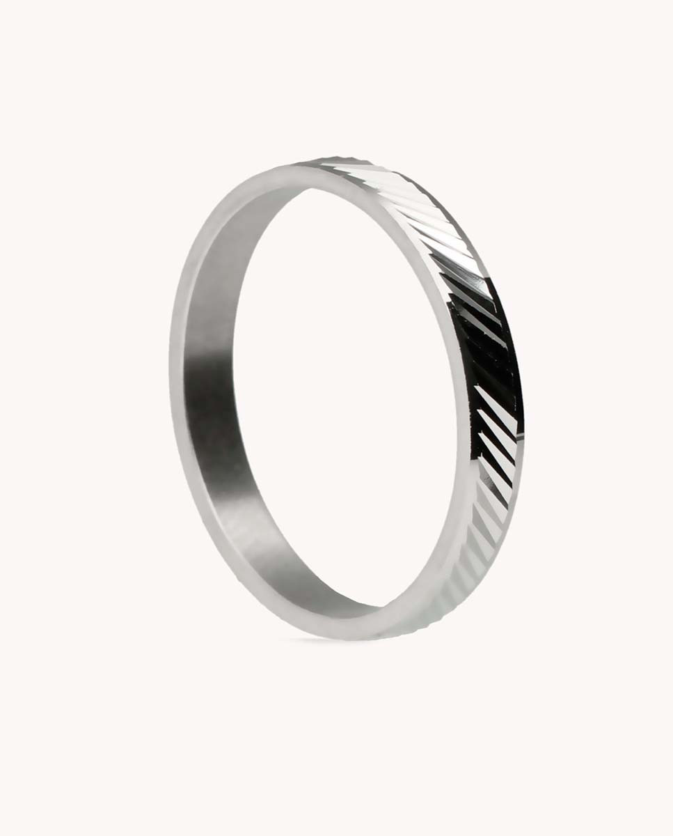 Alianza de plata de ley 925 bañada en rodio de 3,5 mm de ancho con líneas diagonales.
