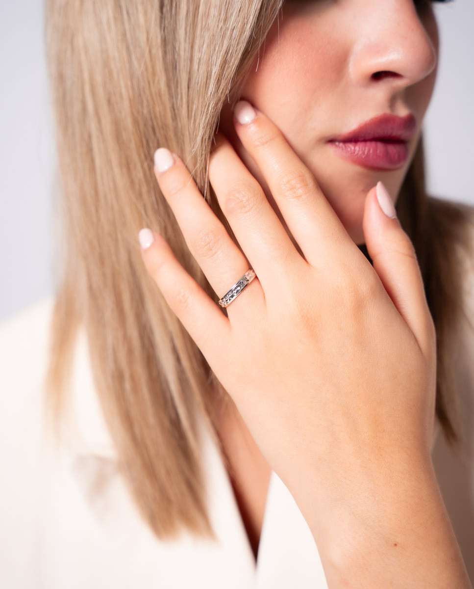 Anillo alianza 3,5 mm lapidada puntas de plata de ley 925 bañada en rodio