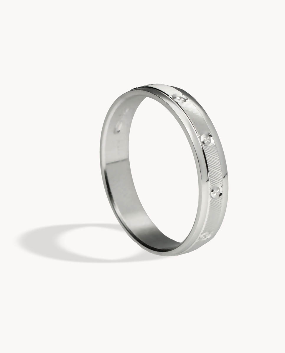 Alianza de plata de ley 925 bañada en rodio de 4 mm de ancho con tornillos.