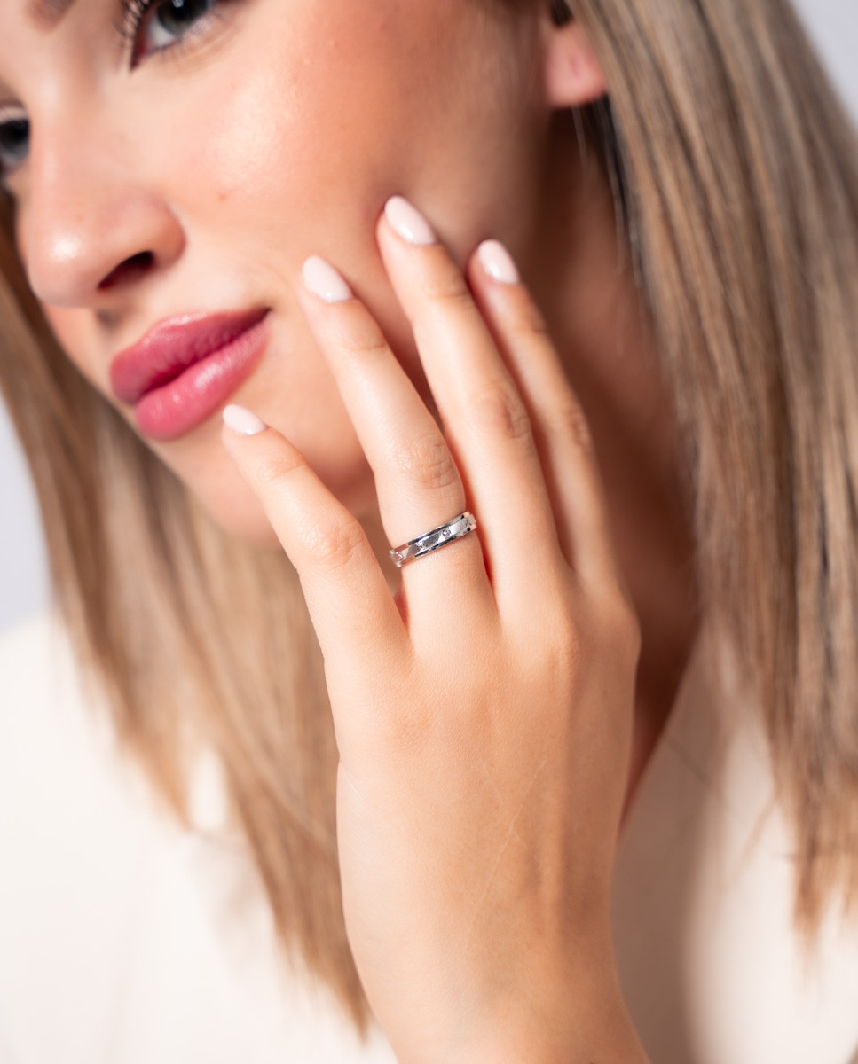 Anillo alianza amores lapidada 4 mm de plata de ley 925 bañada en rodio