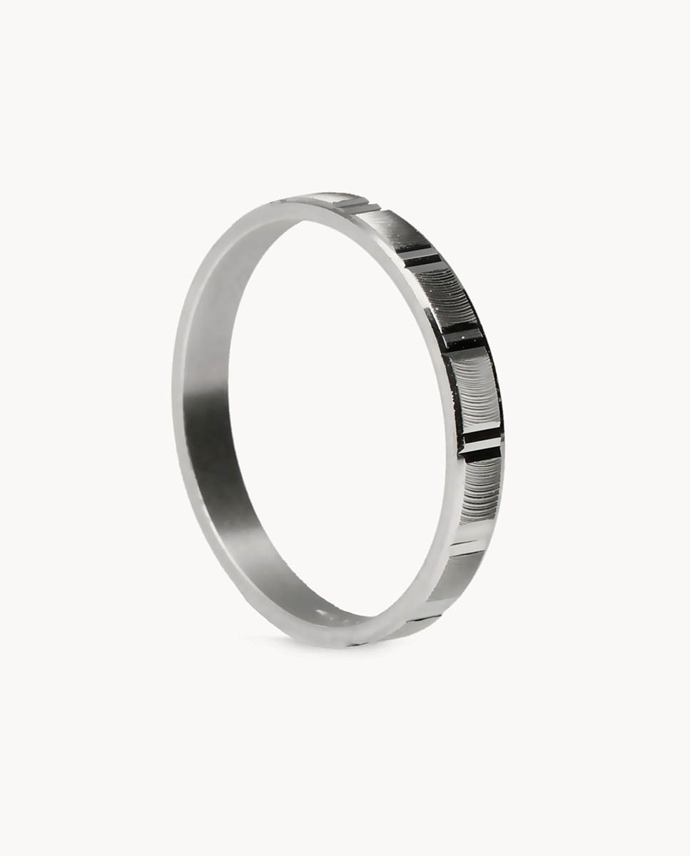 Alianza de plata de ley 925 bañada en rodio de 3,5 mm de ancho con líneas.