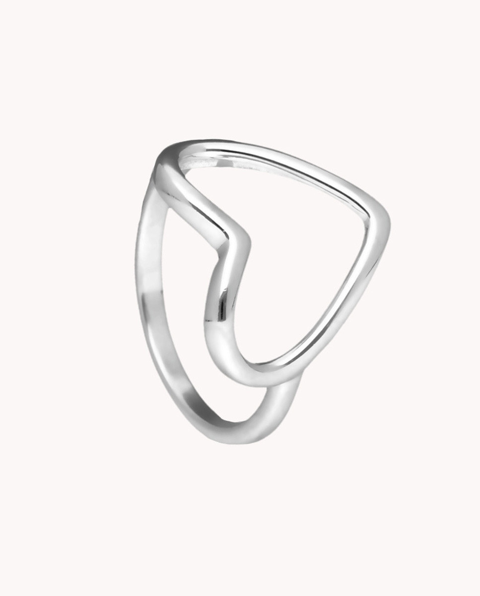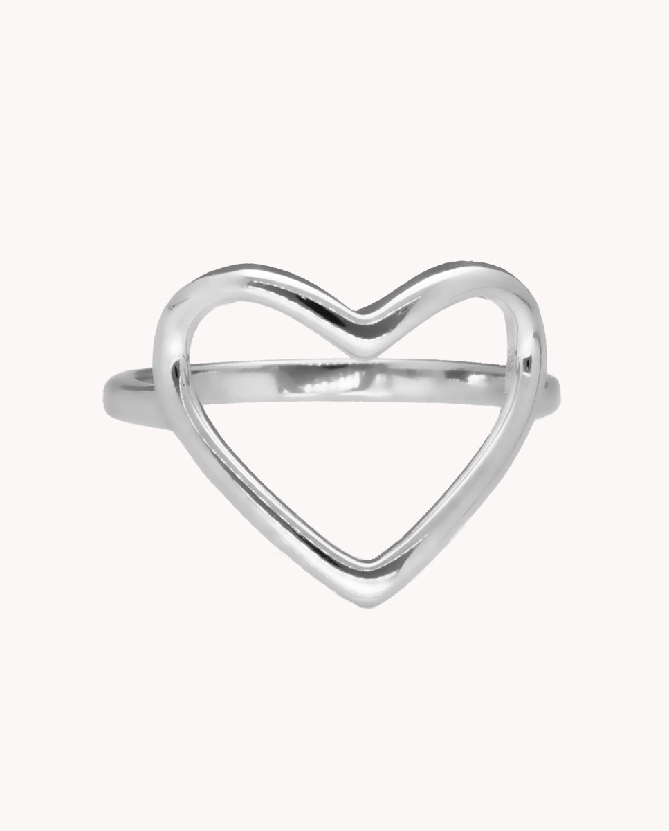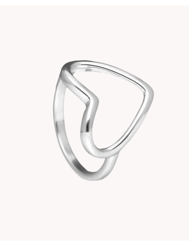 Anillo de plata de ley 925 bañada en rodio con silueta de corazón estilo dibujado de15 x10 mm ( ancho x alto)