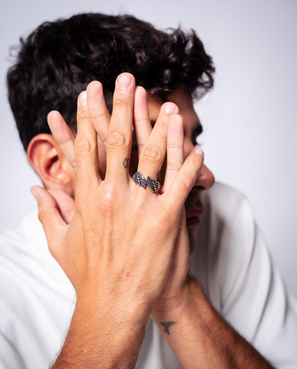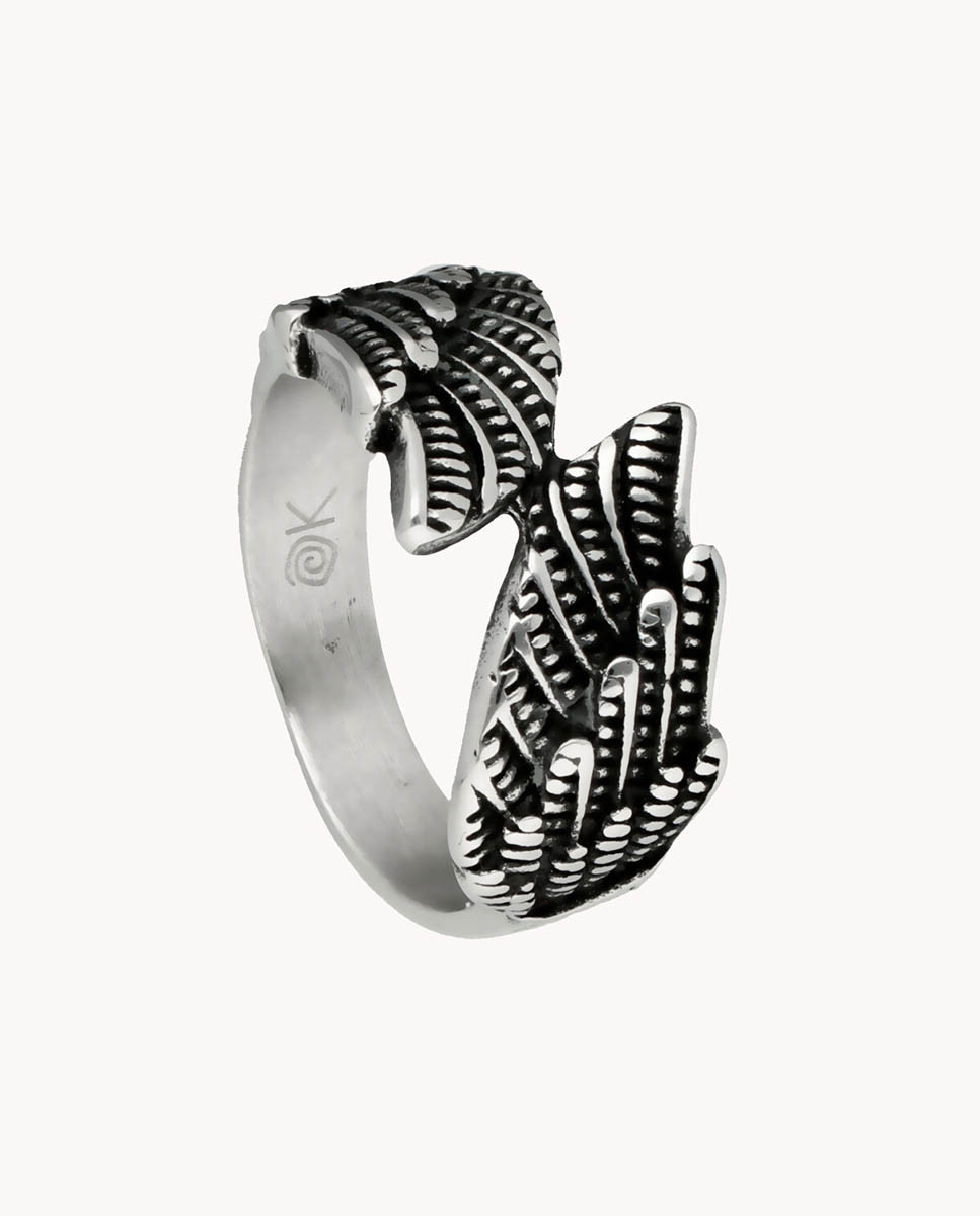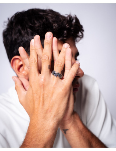 Anillo de acero inoxidable con alas, ancho frontal 11 mm.