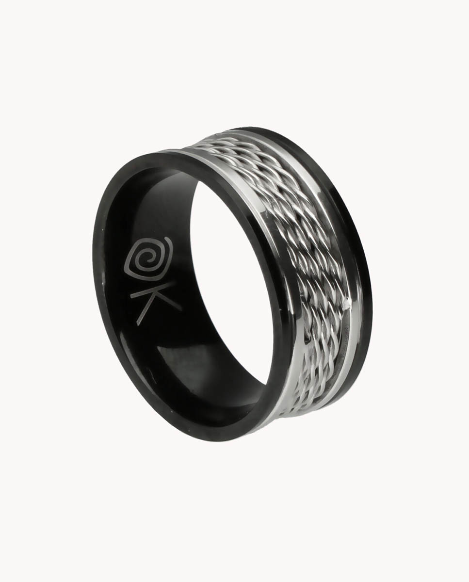 Anillo de acero inoxidable e IP negro con hilos centrales de acero trenzado, 10 mm de ancho.