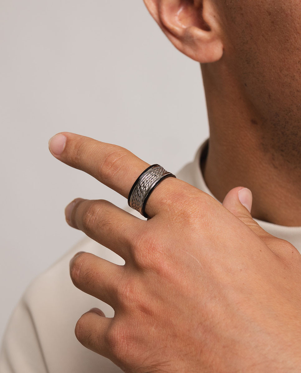 Anillo fibra de acero inoxidable con ip negro
