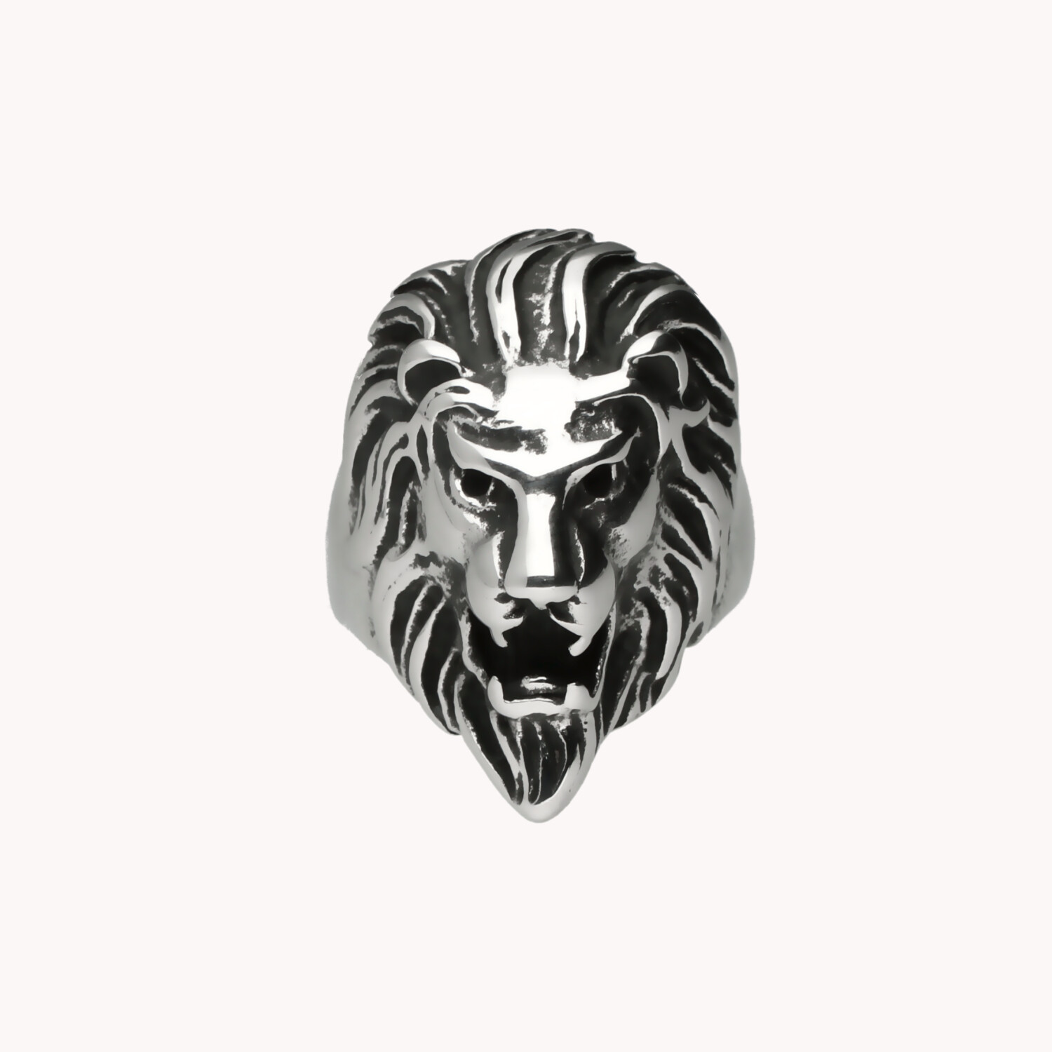 Anillo de acero inoxidable con cabeza de león.