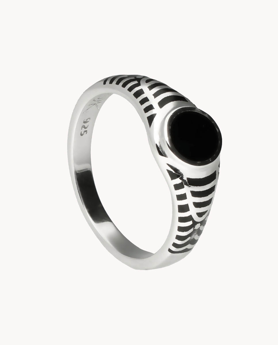 Anillo de plata de ley 925 bañada en rodio, tipo sello con onyx.