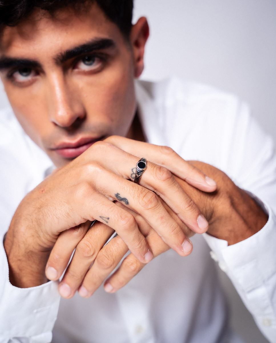 Anillo sello cairo de plata de ley 925 bañada en rodio