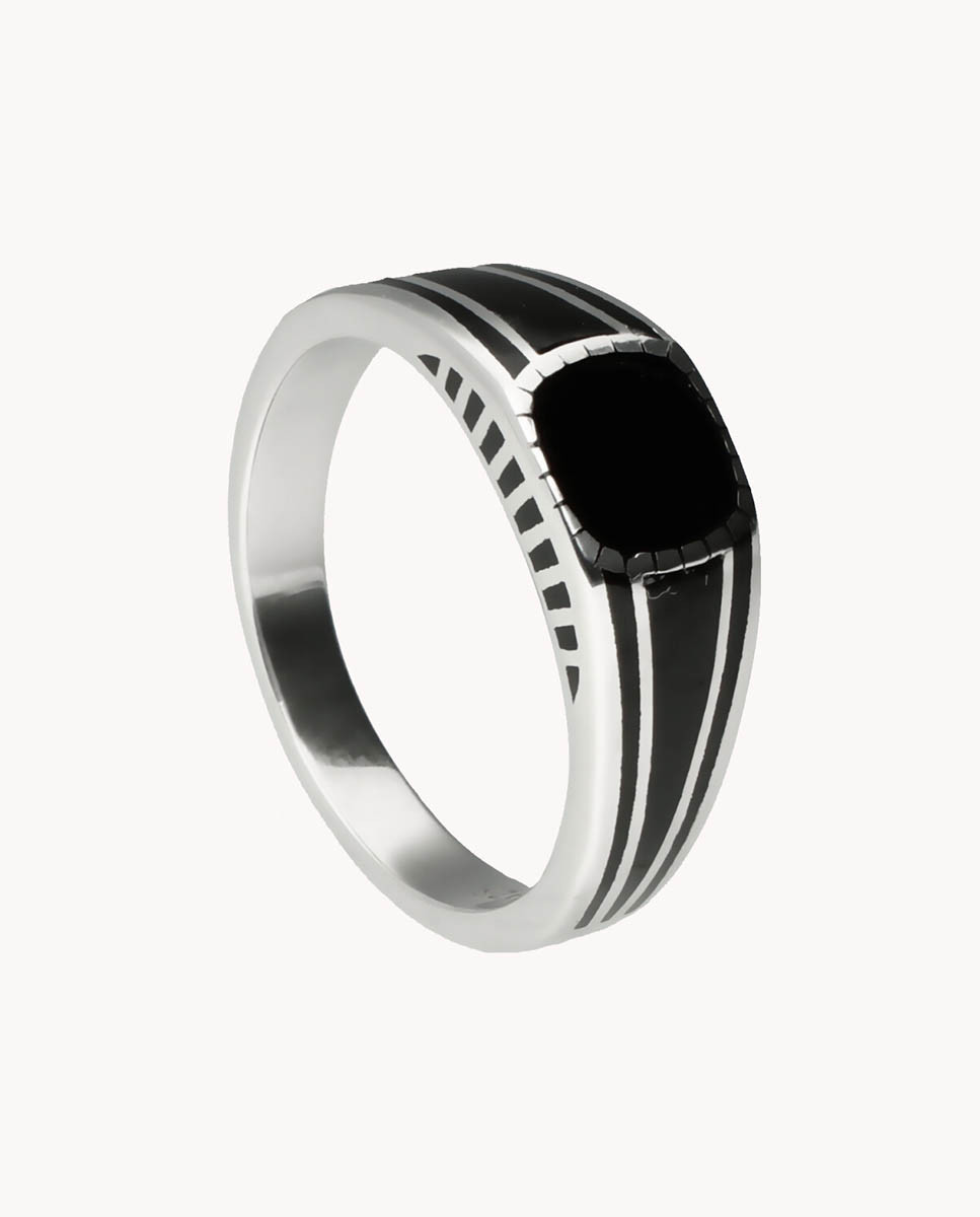 Anillo de plata de ley 925 bañado en rodio, tipo sello con onyx.