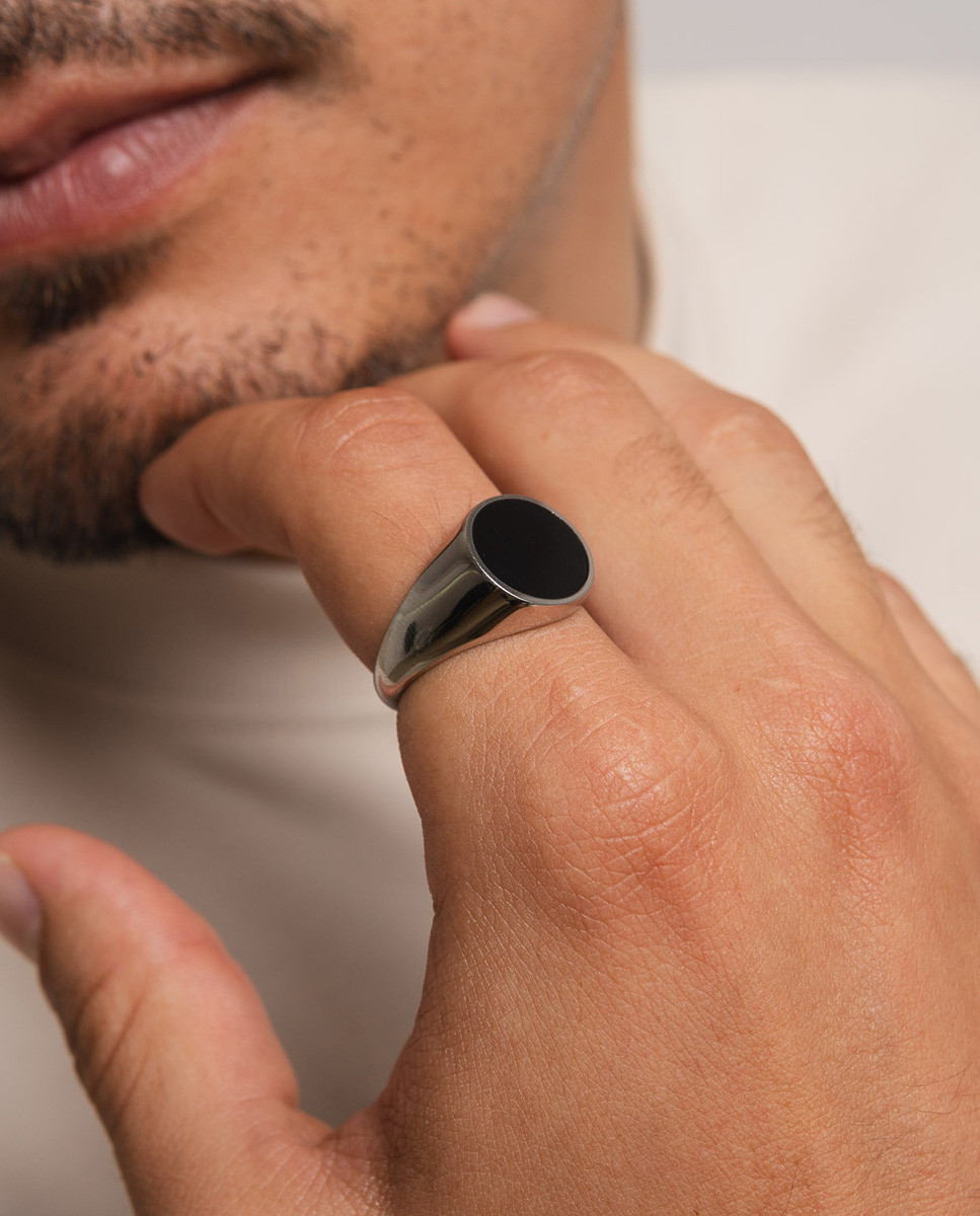 Anillo de acero inoxidable con Ónix negro de 13,5 mm de diámetro.