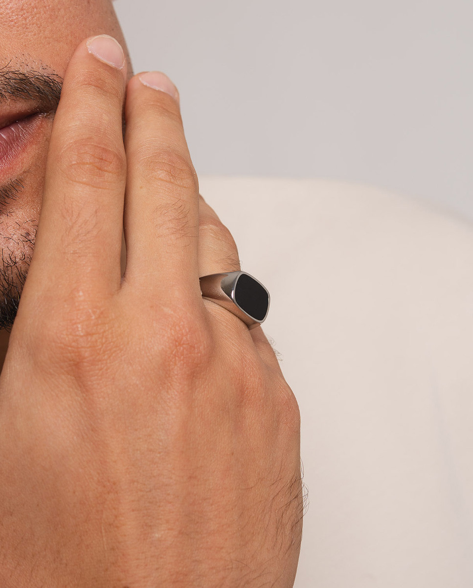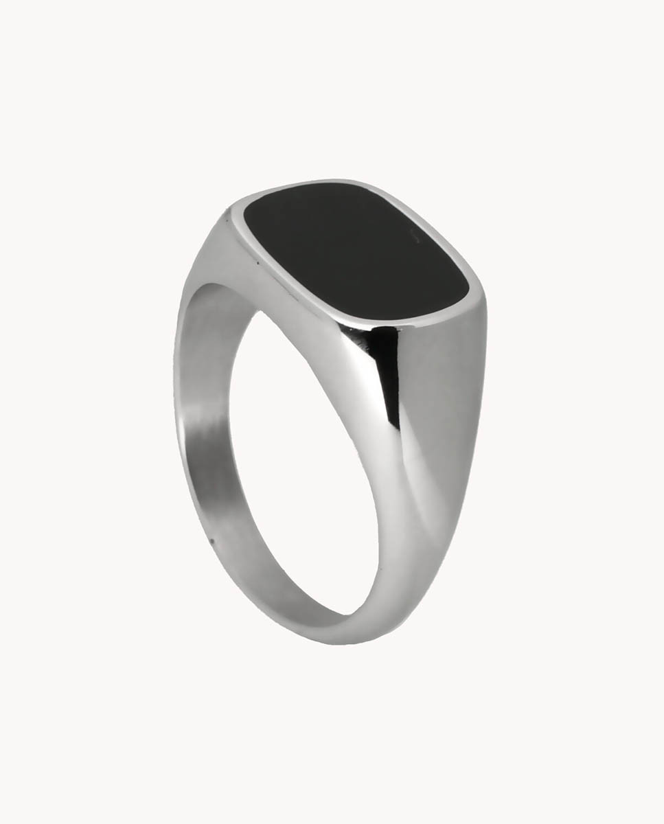 Anillo de acero inoxidable con Ónix negro de 14 mm x 11 mm (ancho por alto).