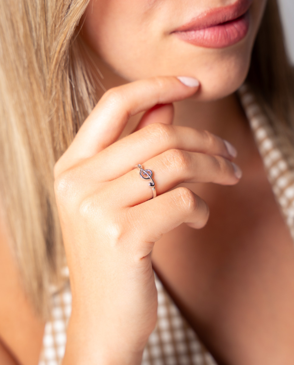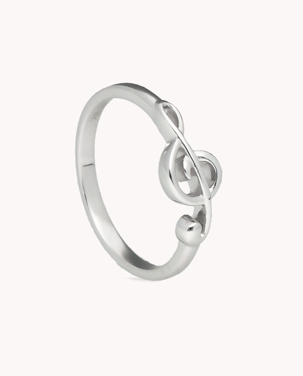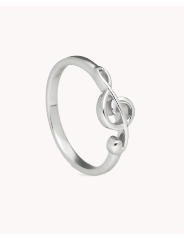 Anillo de plata de ley 925 bañado en rodio con detalle de nota musical.