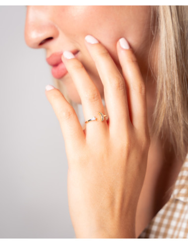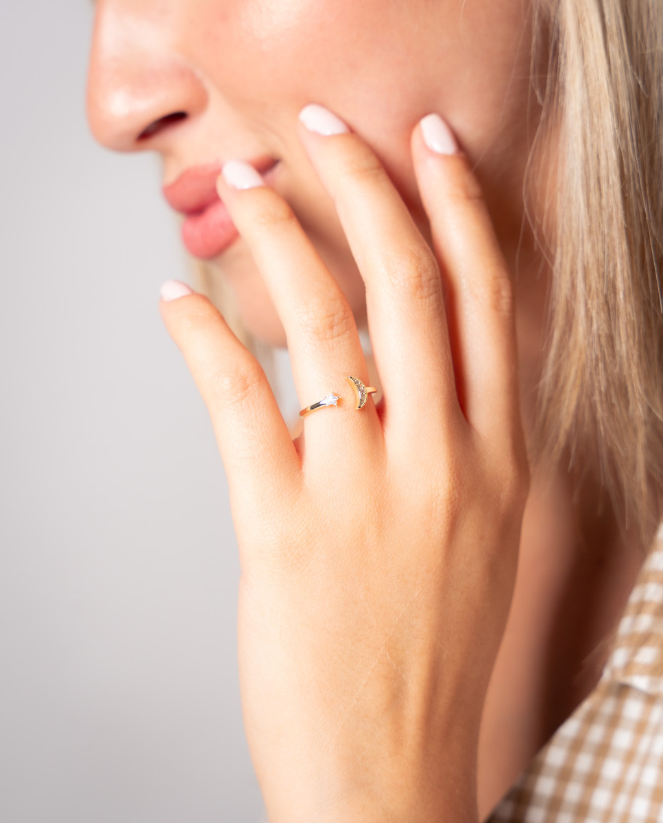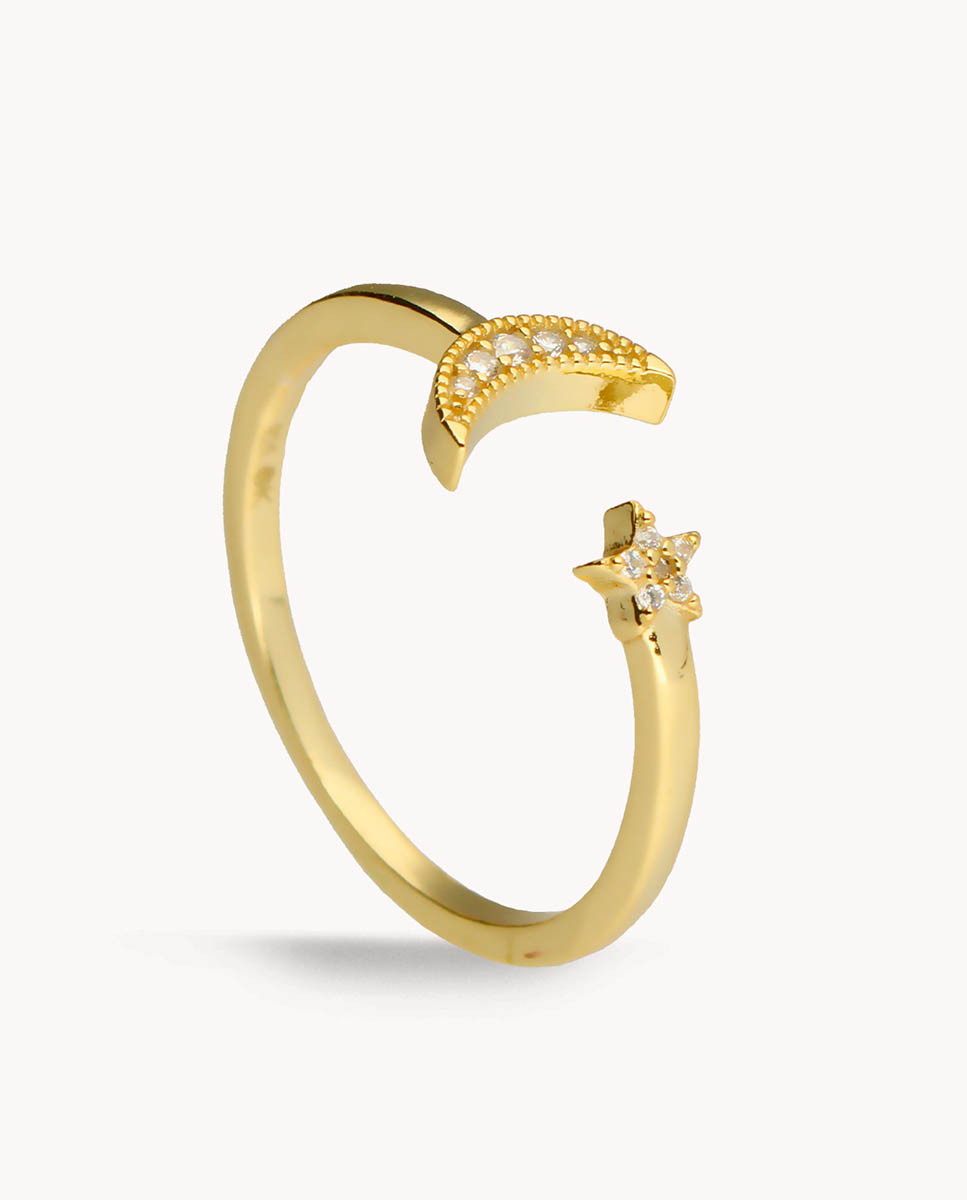 Anillo abierto luna y estrella sky de plata de ley 925 bañada en oro