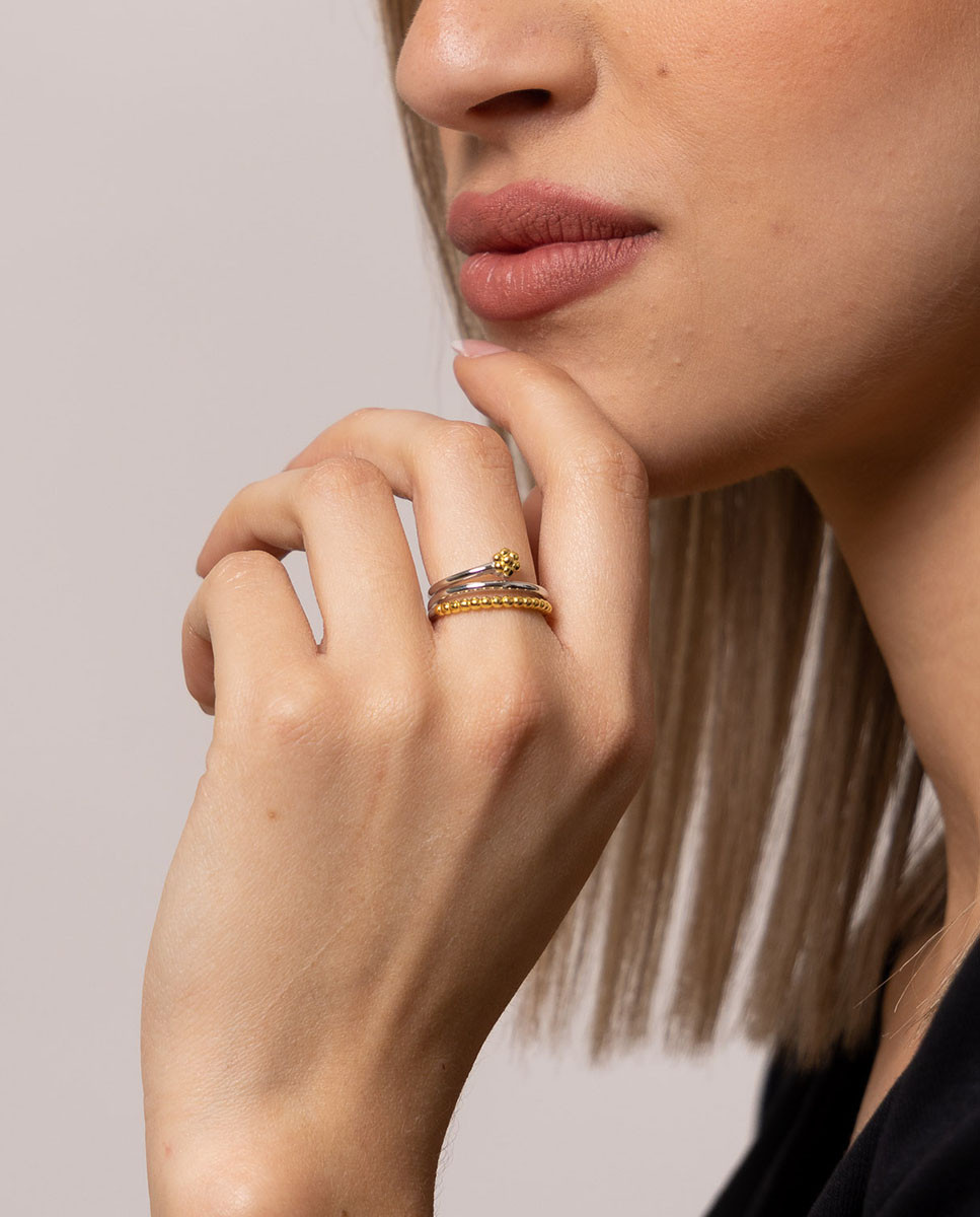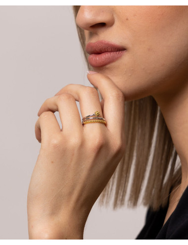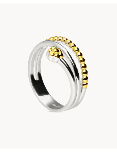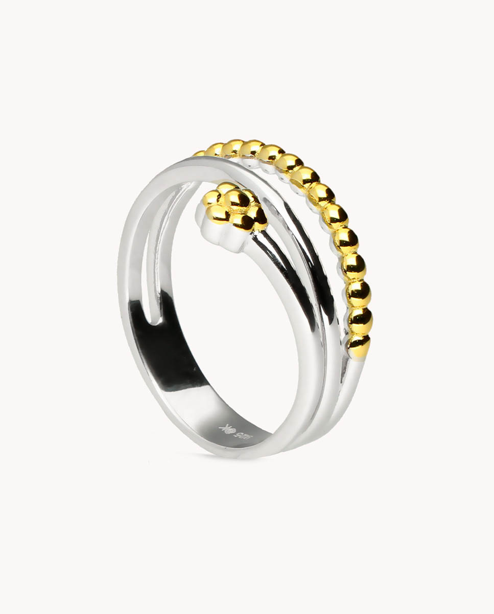 Anillo de plata de ley 925 bicolor (bañado en oro y bañado en rodio), con detalle de margarita.
