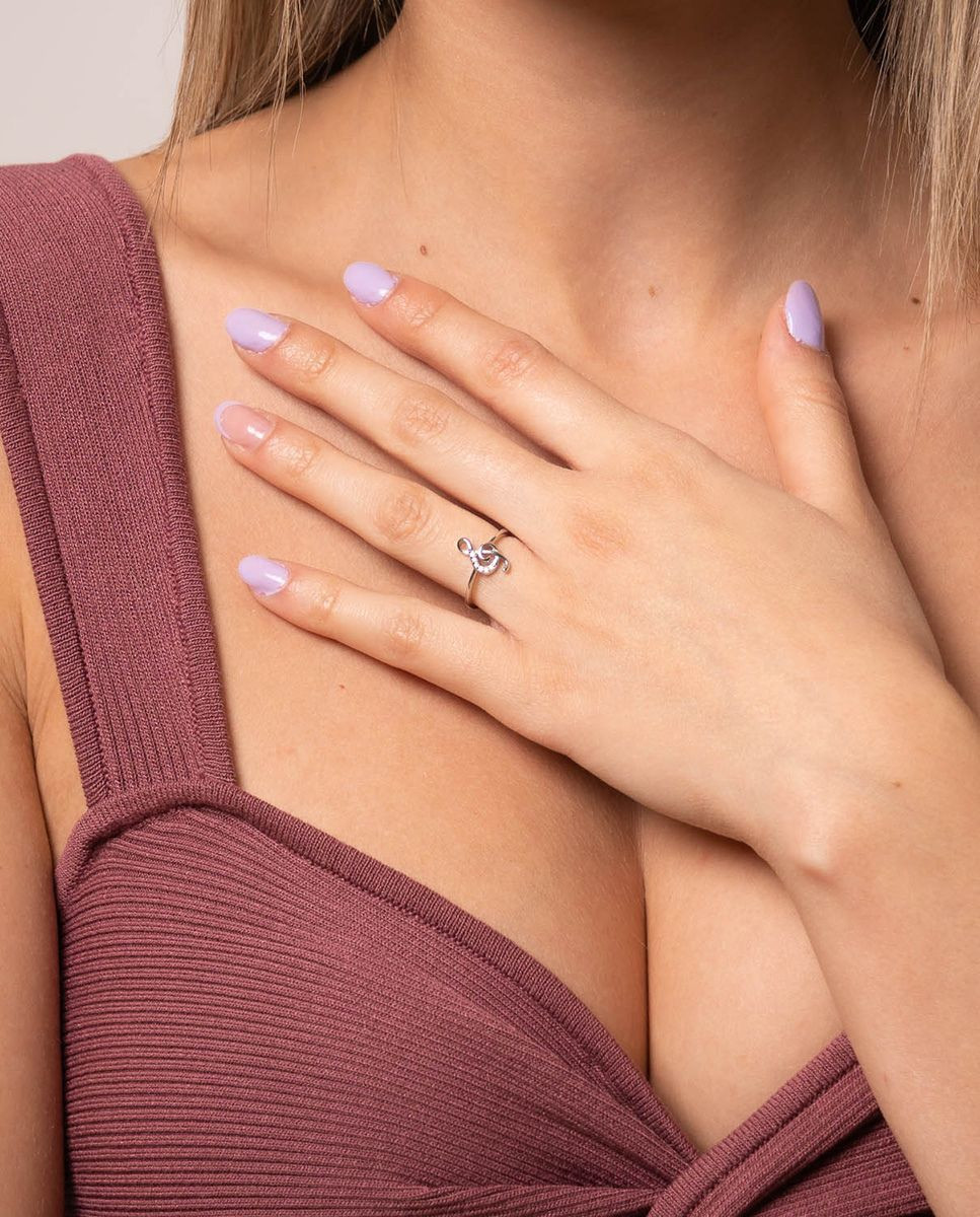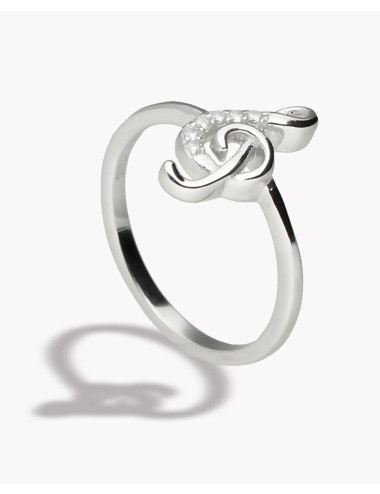 Anillo de plata de ley 925 bañado en rodio con motivo de nota musical y detalle de circonitas blancas