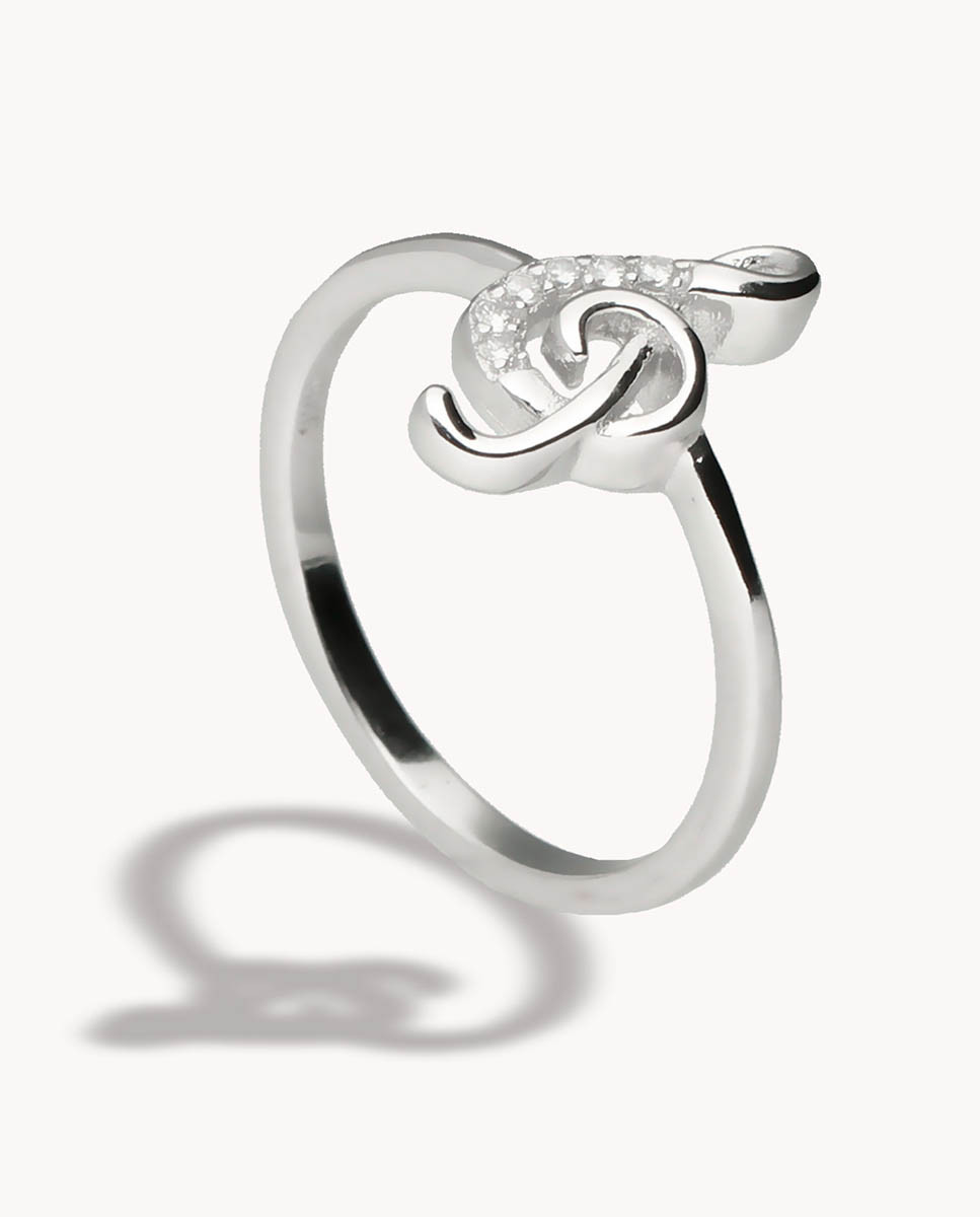 Anillo clave de sol brillante de plata de ley 925 bañada en rodio