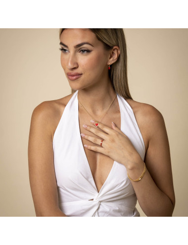 Anillo corazones rojos de plata de ley 925 bañada en oro