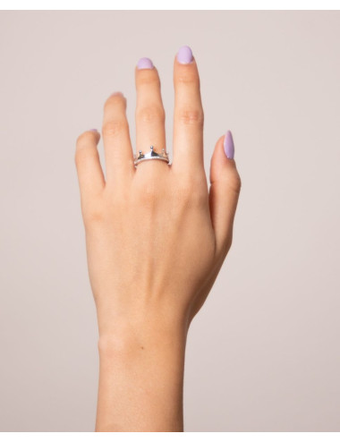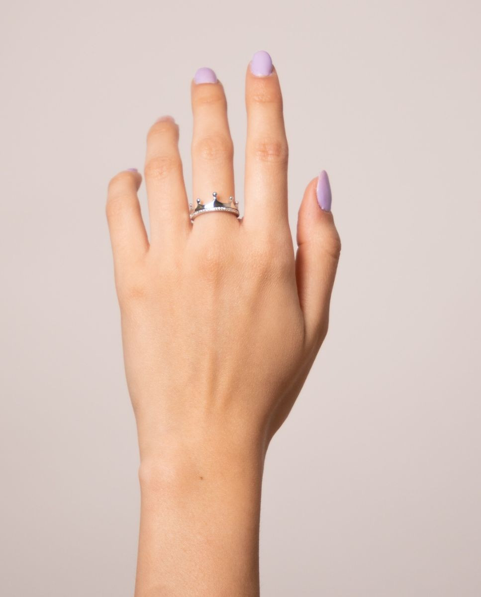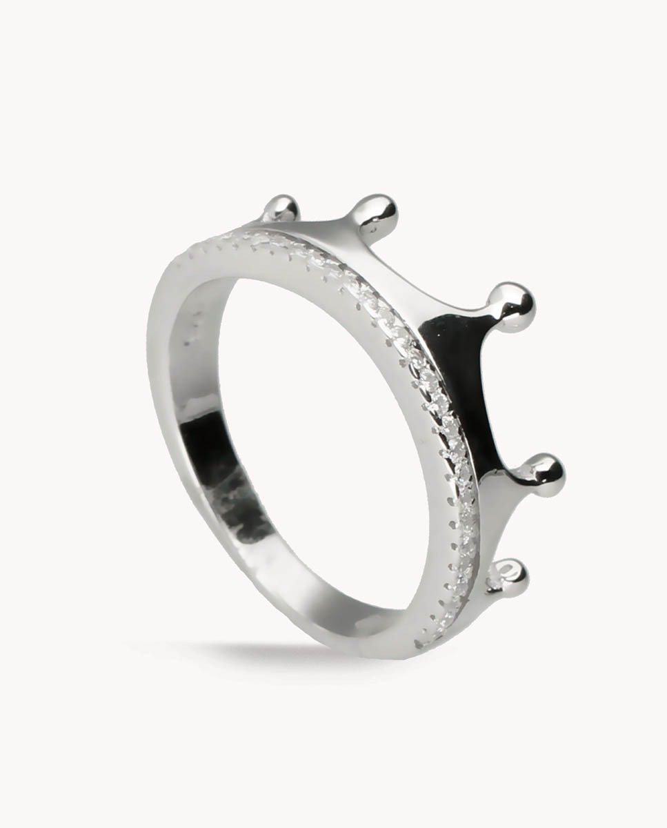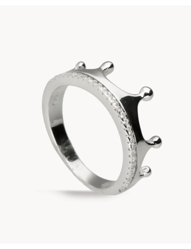 Anillo de plata de ley 925 bañada en rodio con motivo corona y detalle de circonitas blancas.