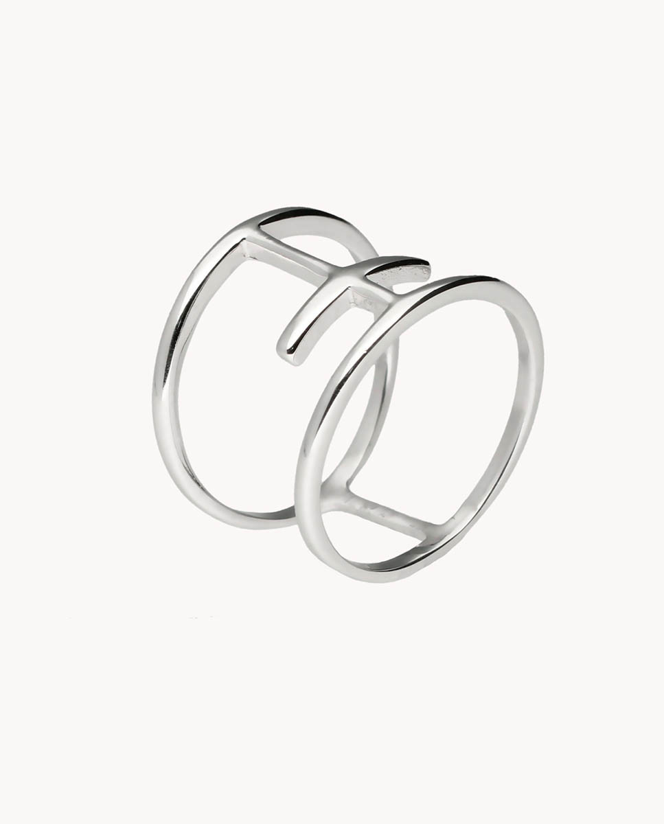Anillo cruzado de plata de ley 925 bañada en rodio