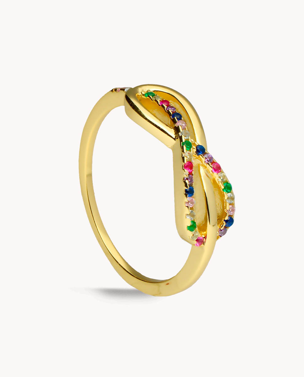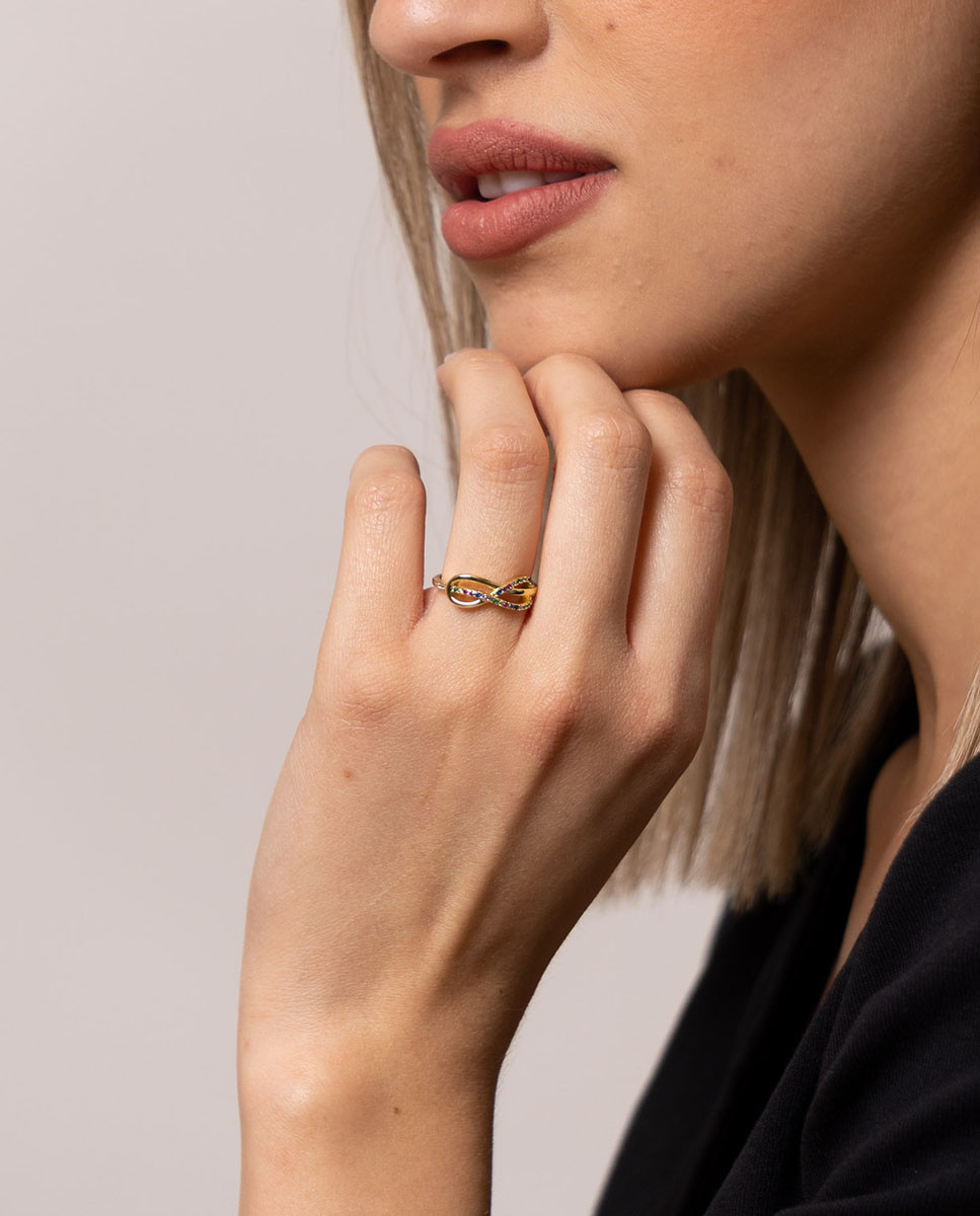 Anillo de plata de ley 925 bañada en oro con infinito y circonitas
