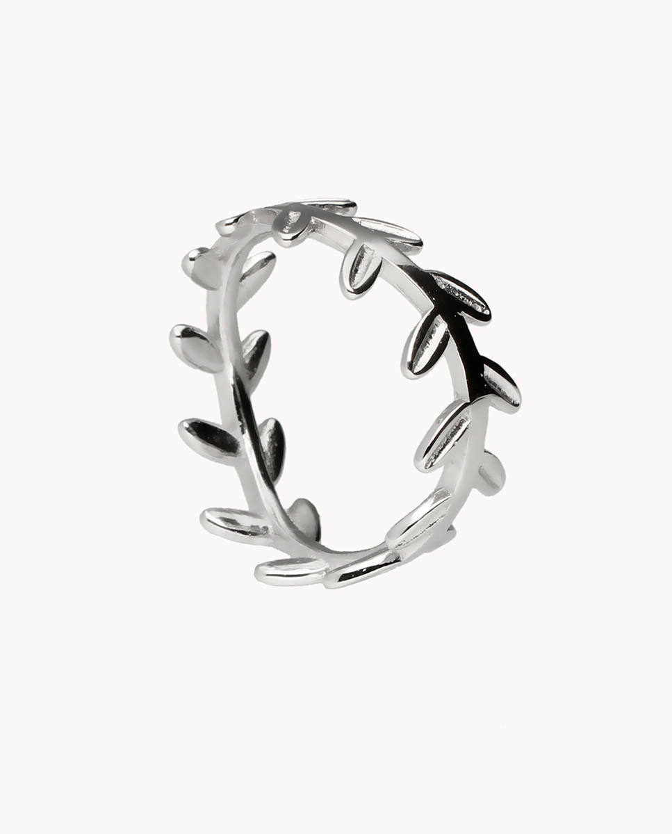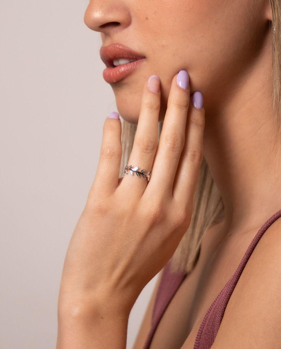 Anillo de plata de ley bañado en rodio en forma de hojas.