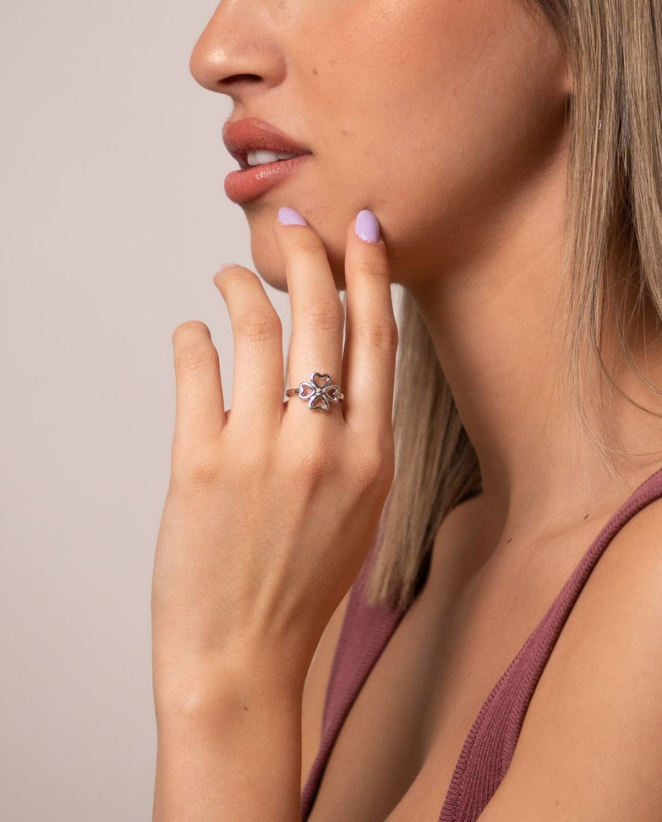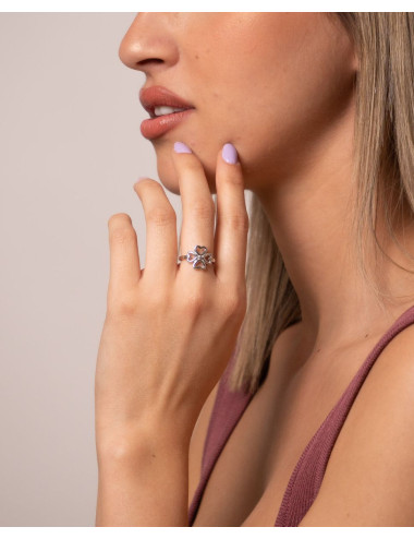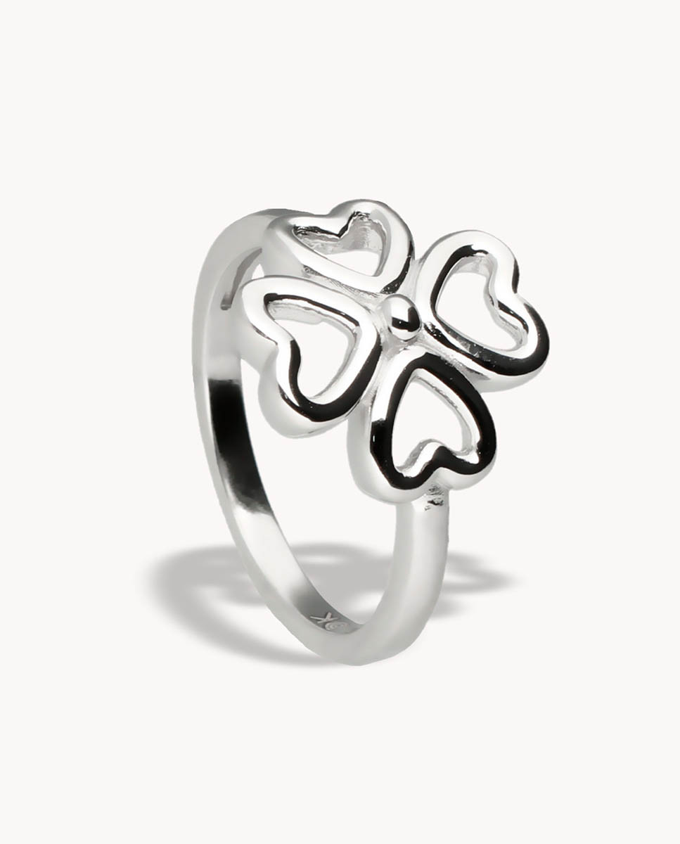 Anillo de plata de ley 925 bañado en rodio con motivo trébol.