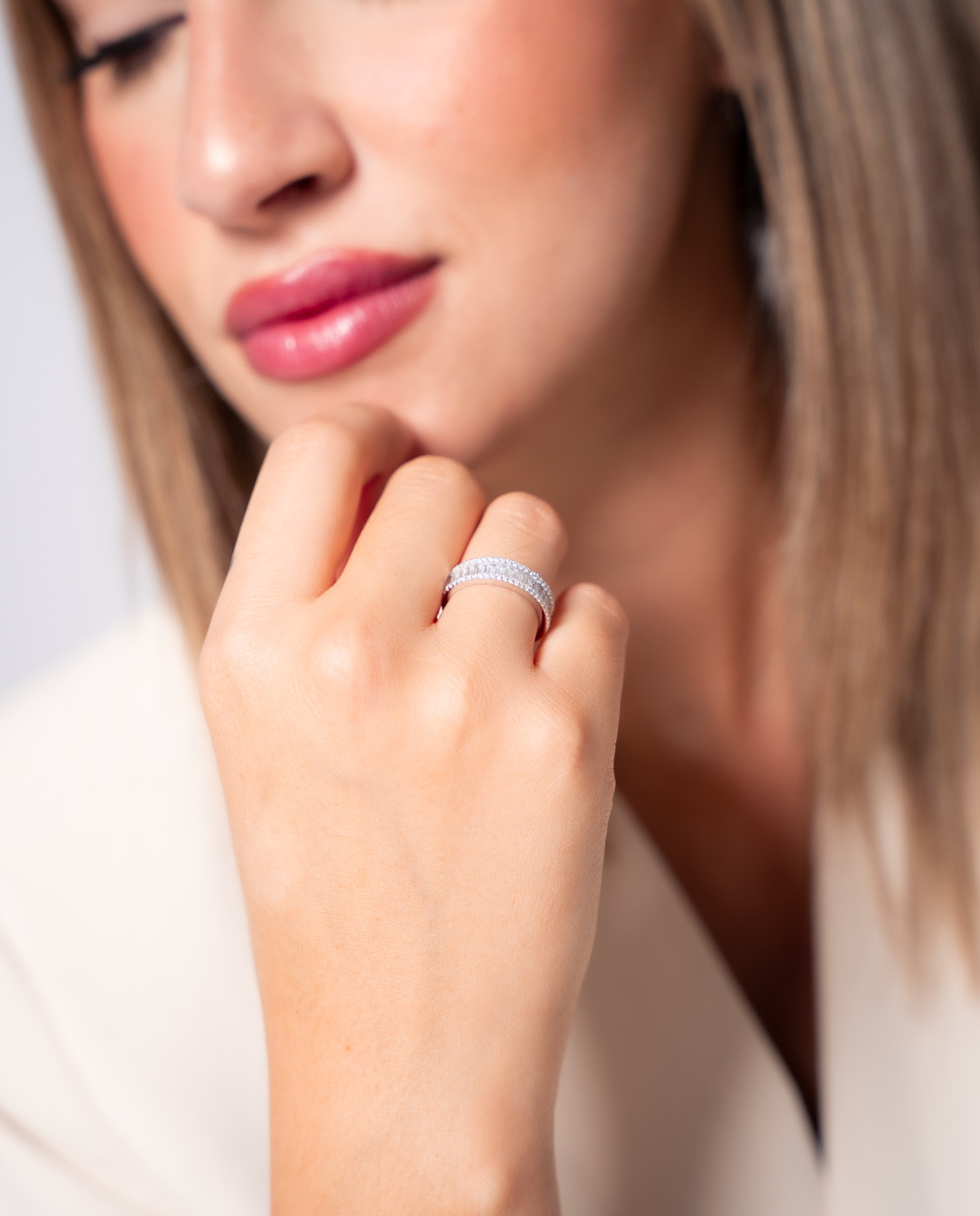 Anillo de plata fila realeza de ley 925 bañada en rodio y circonitas
