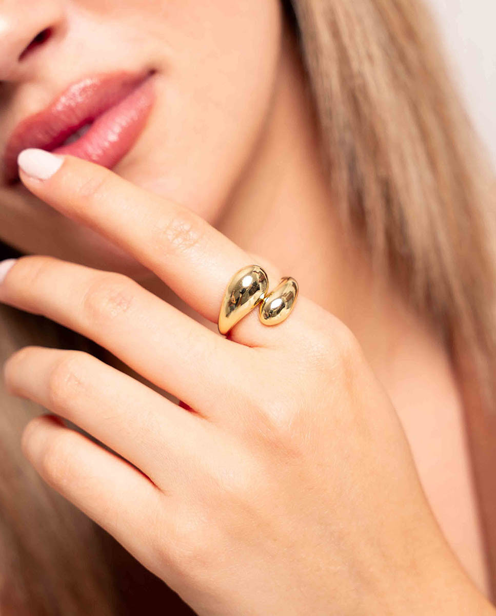 Anillo de plata de ley 925 bañada en oro 18K con diseño cruzado.