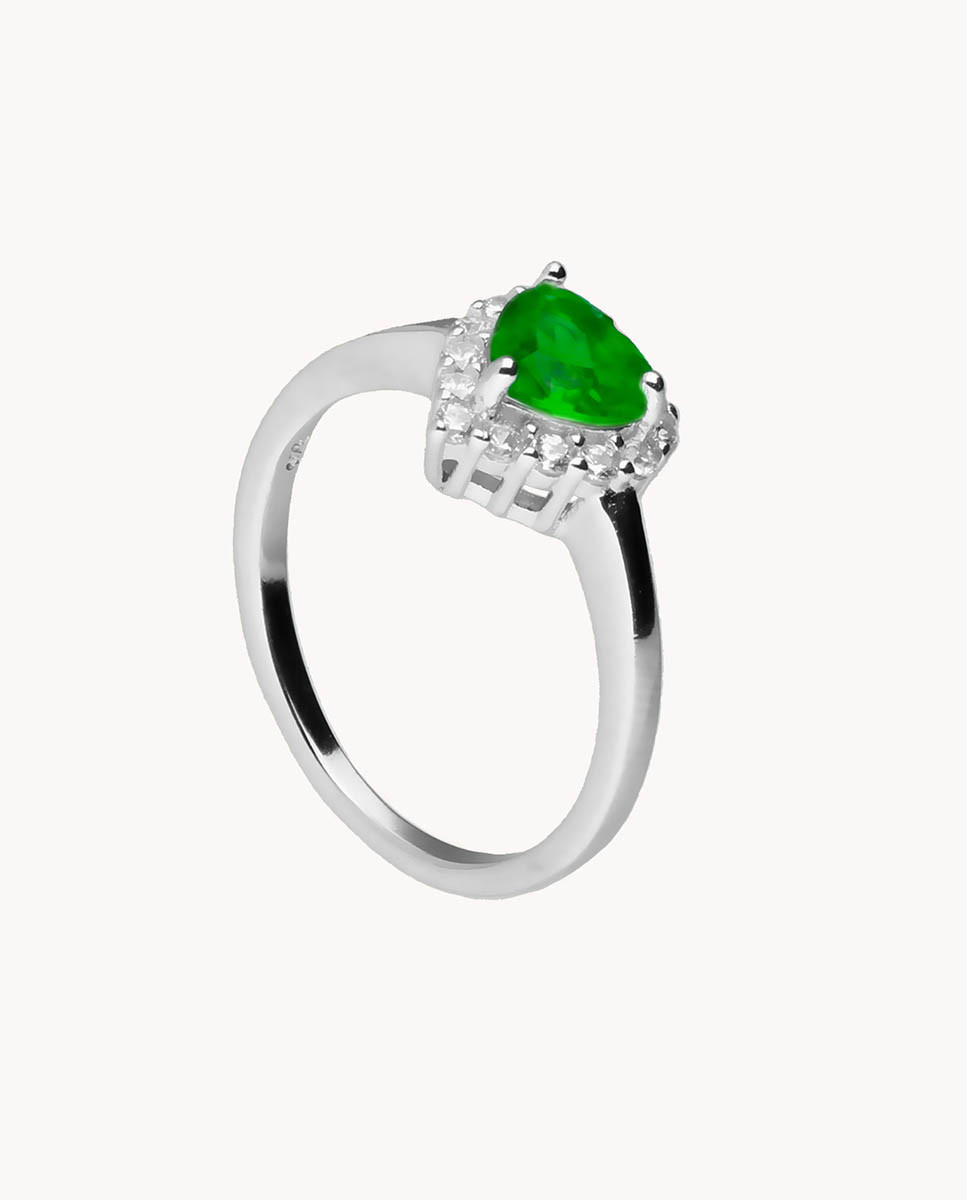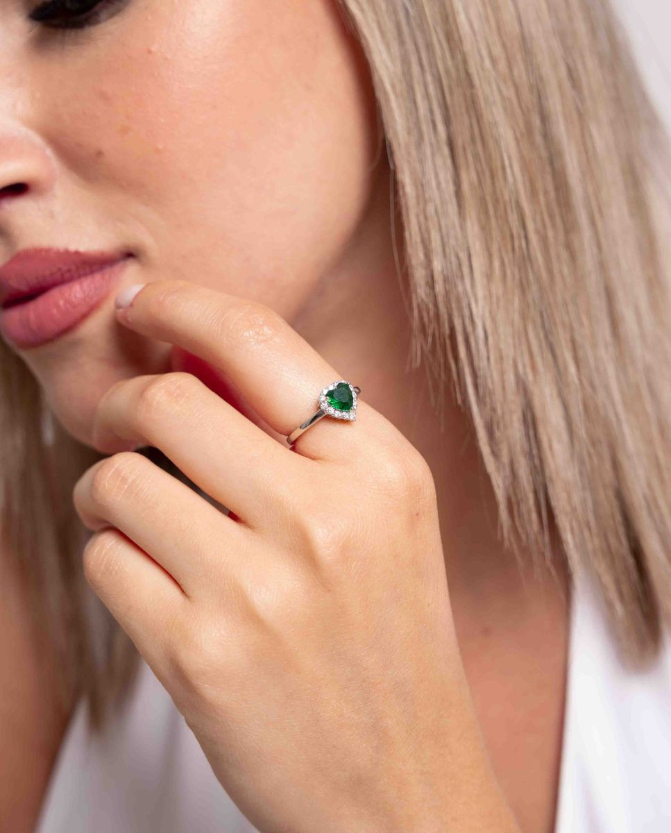 Anillo esmeralda corazón de plata de ley 925 bañada en rodio