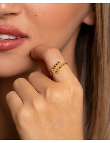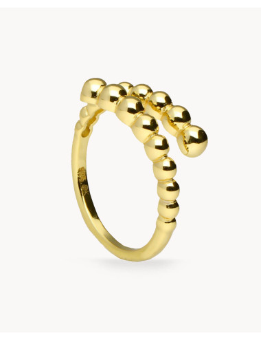 Anillo espiral bolitas de plata de ley 925 bañada en oro