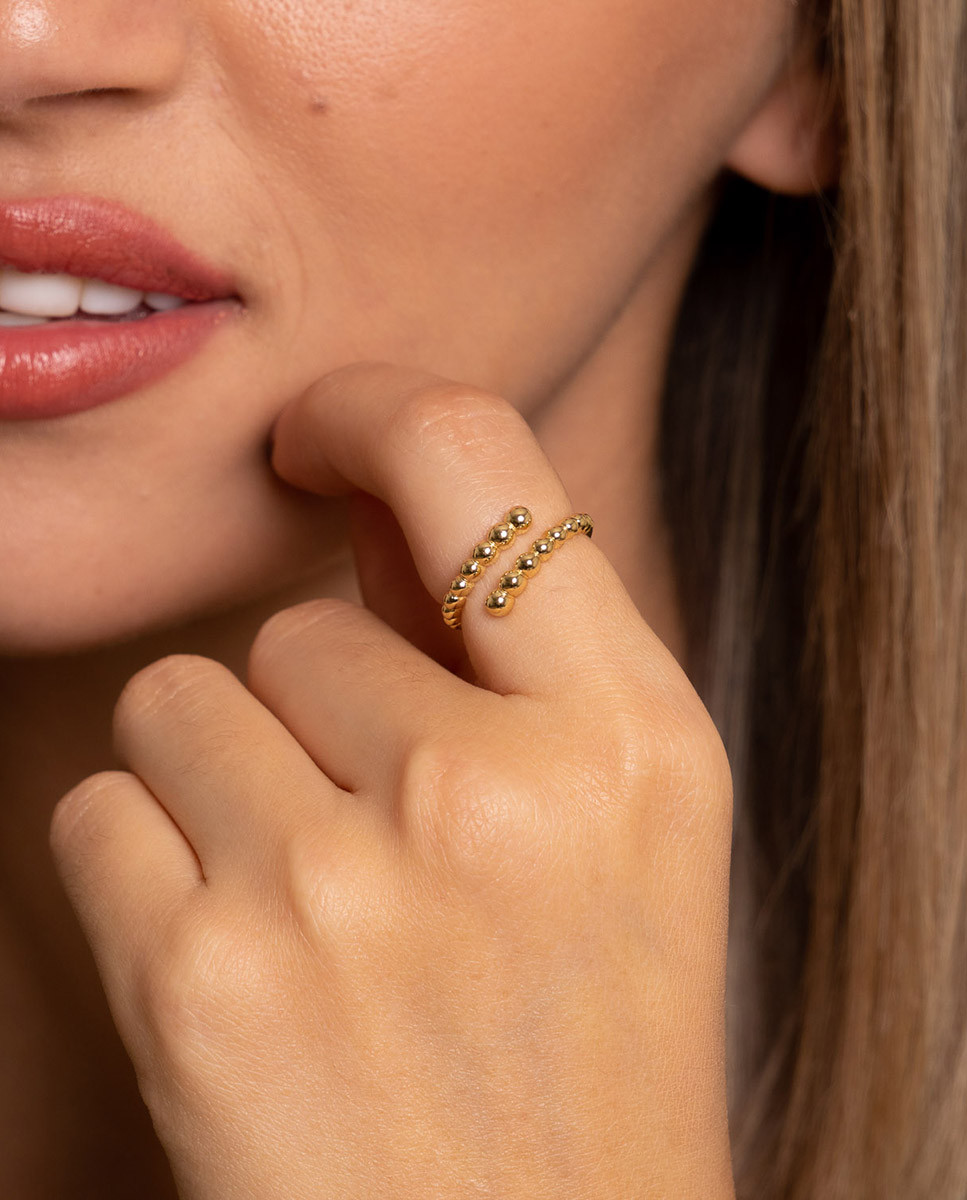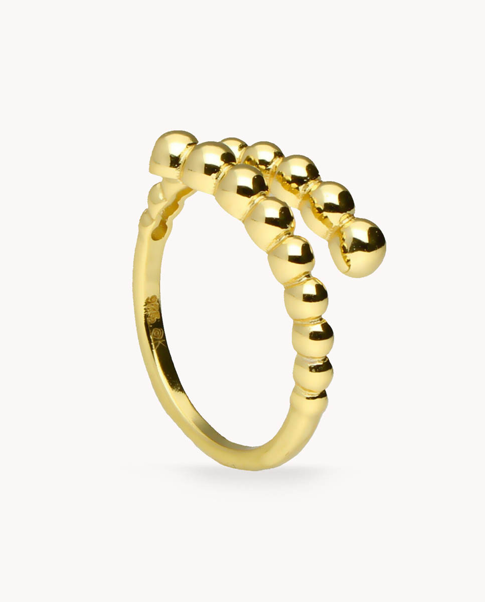 Anillo de plata de ley 925 bañada en oro de 18K ajustable con diseño de bolitas.