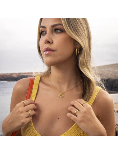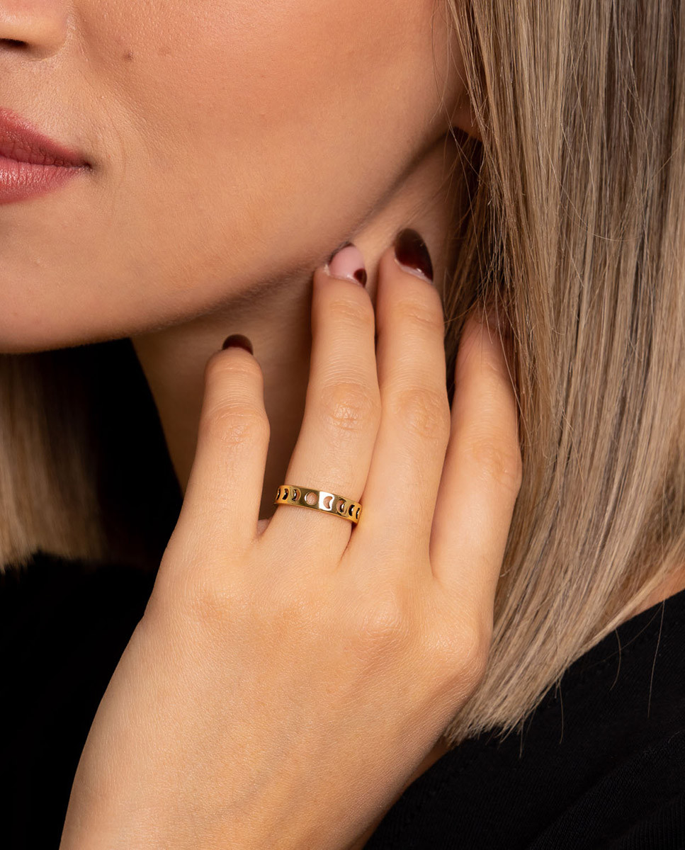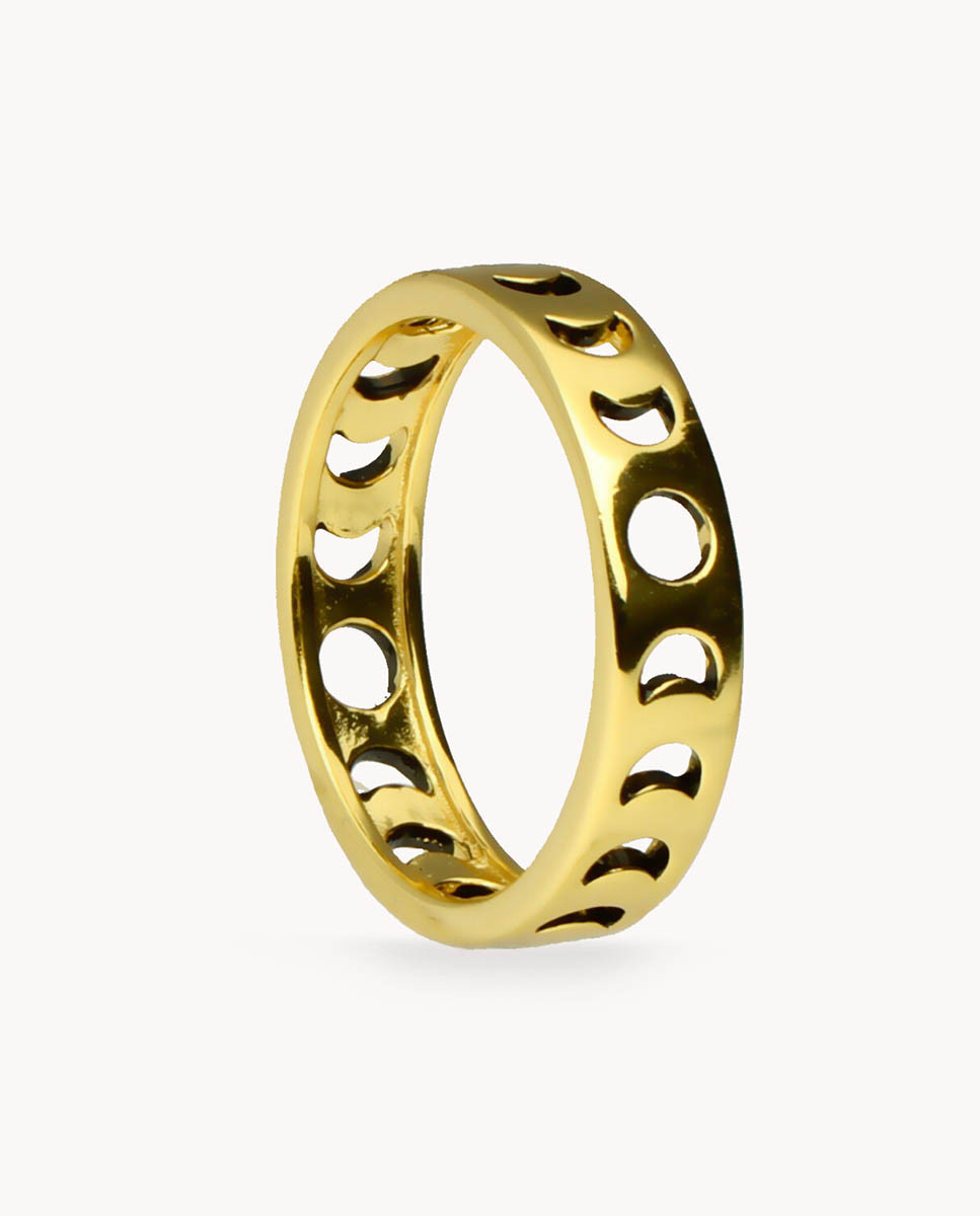 Anillo de plata de ley 925 bañada en oro de 18K con detalle de lunas en todo el contorno.