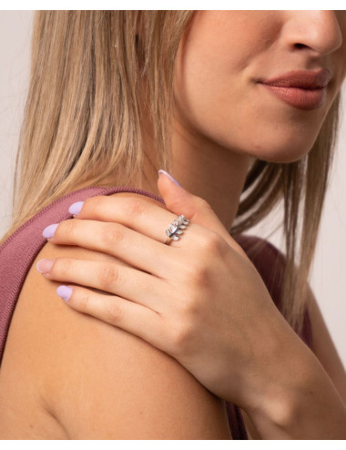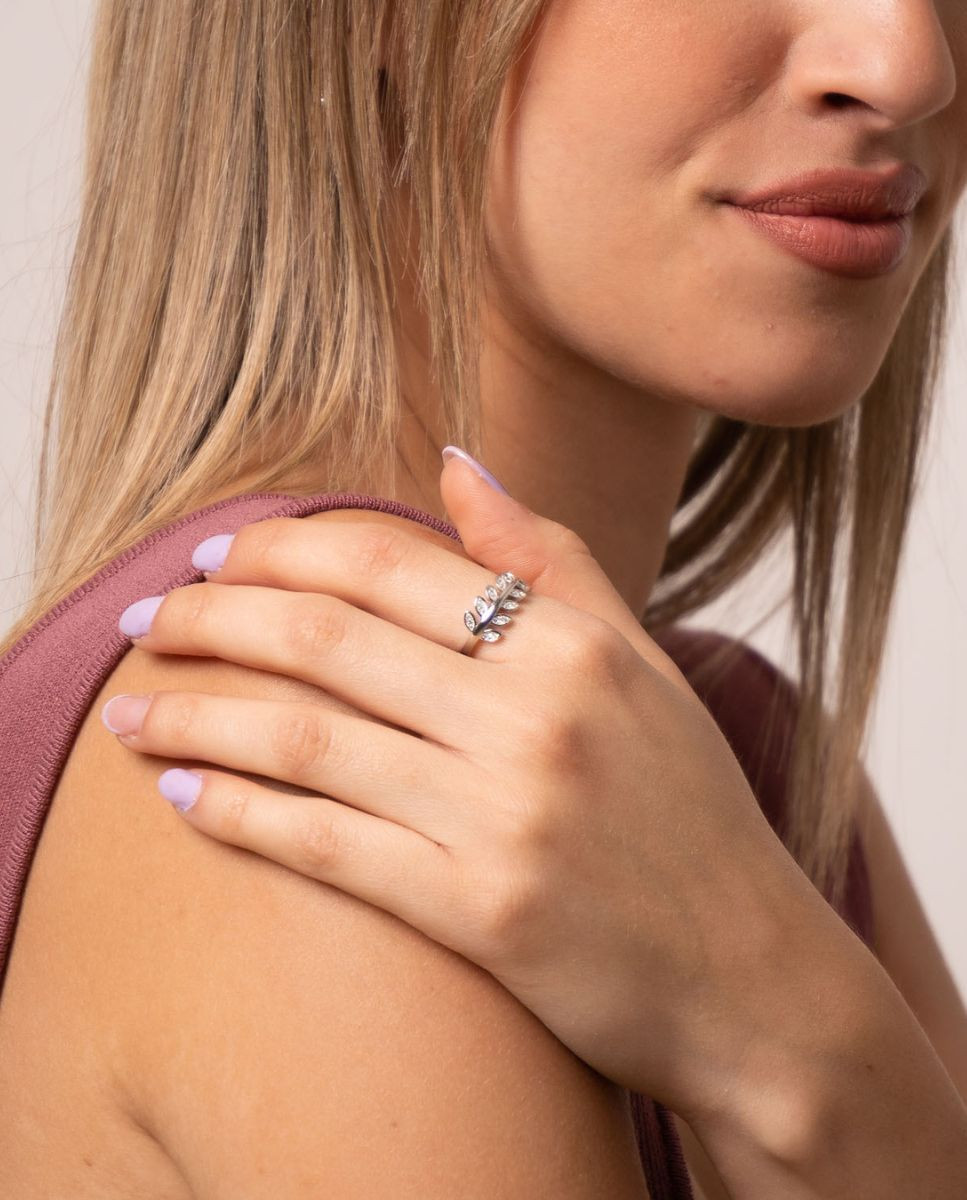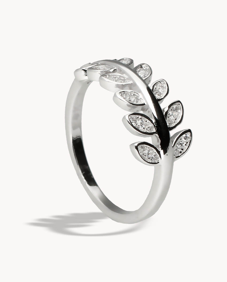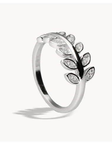 Anillo greco rama brillante de plata de ley 925 bañada en rodio