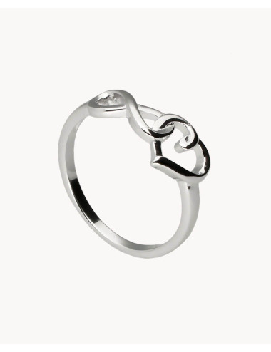 Anillo infinito y corazón unen de plata de ley 925 bañada en rodio