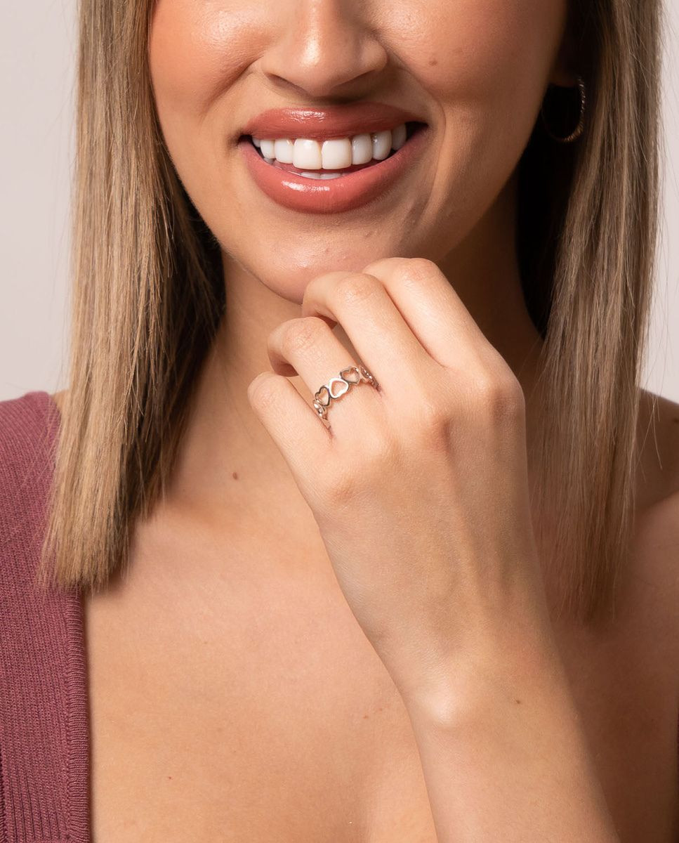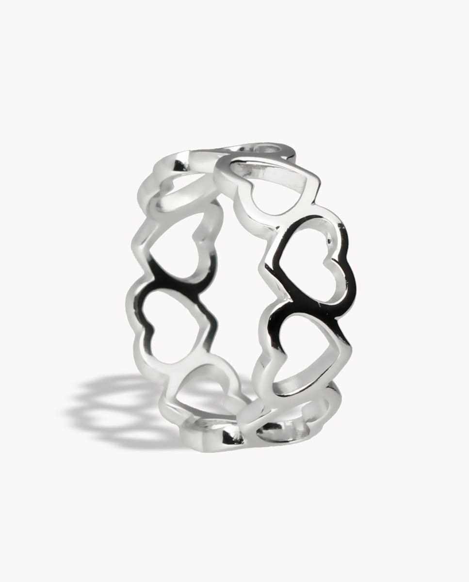 Anillo de plata de ley 925 bañada en rodio con corazones.