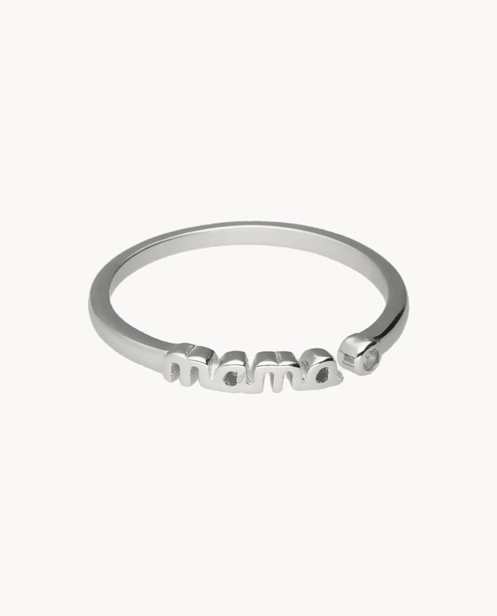 Anillo mamá abierto de plata de ley 925 bañada en rodio