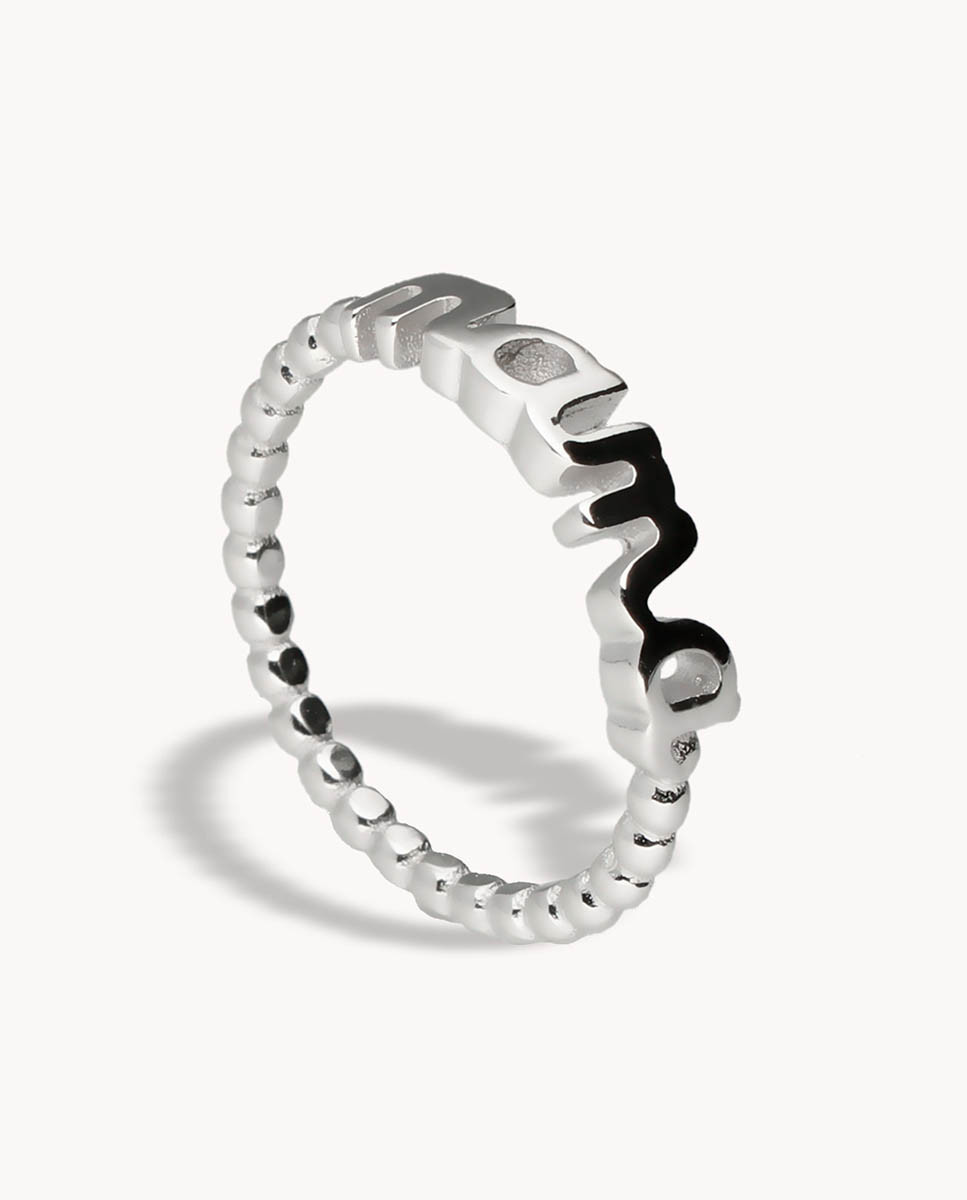 Anillo de plata de ley 925 bañada en rodio con motivo mamá.
