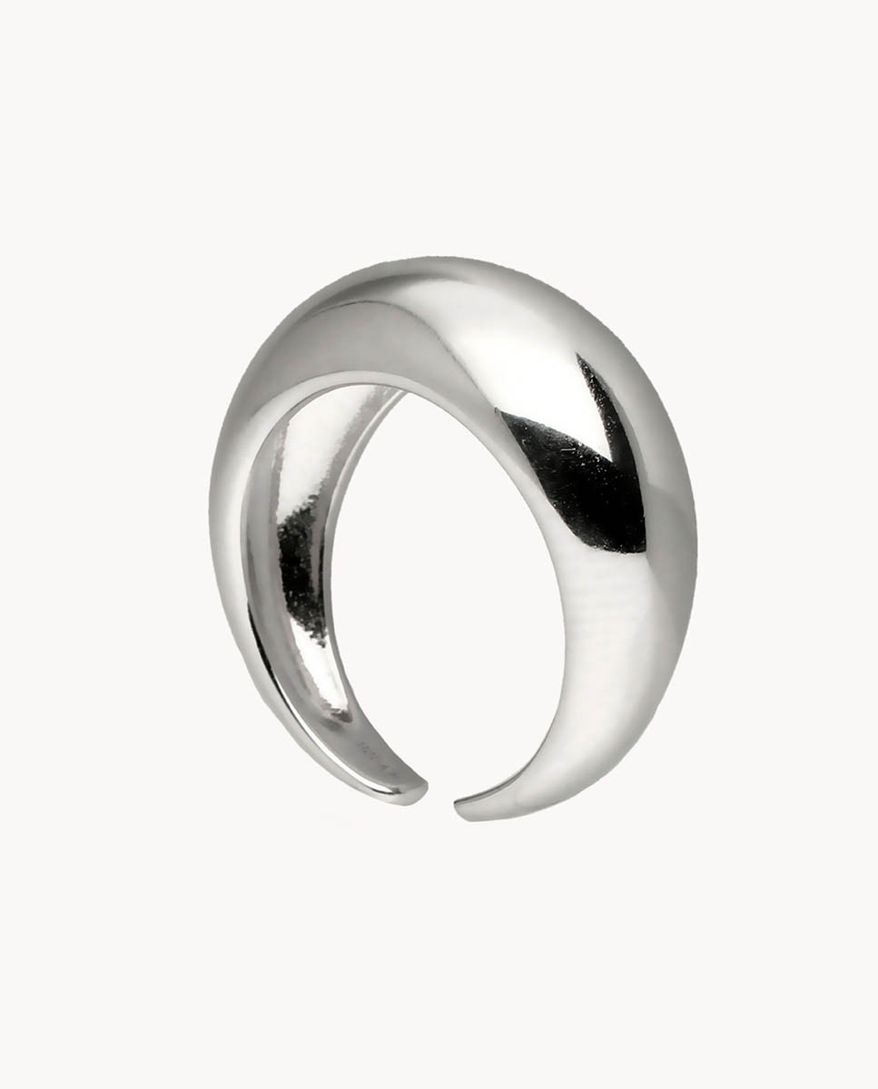 Anillo de plata de ley 925 bañada en rodio y semiabierto.
