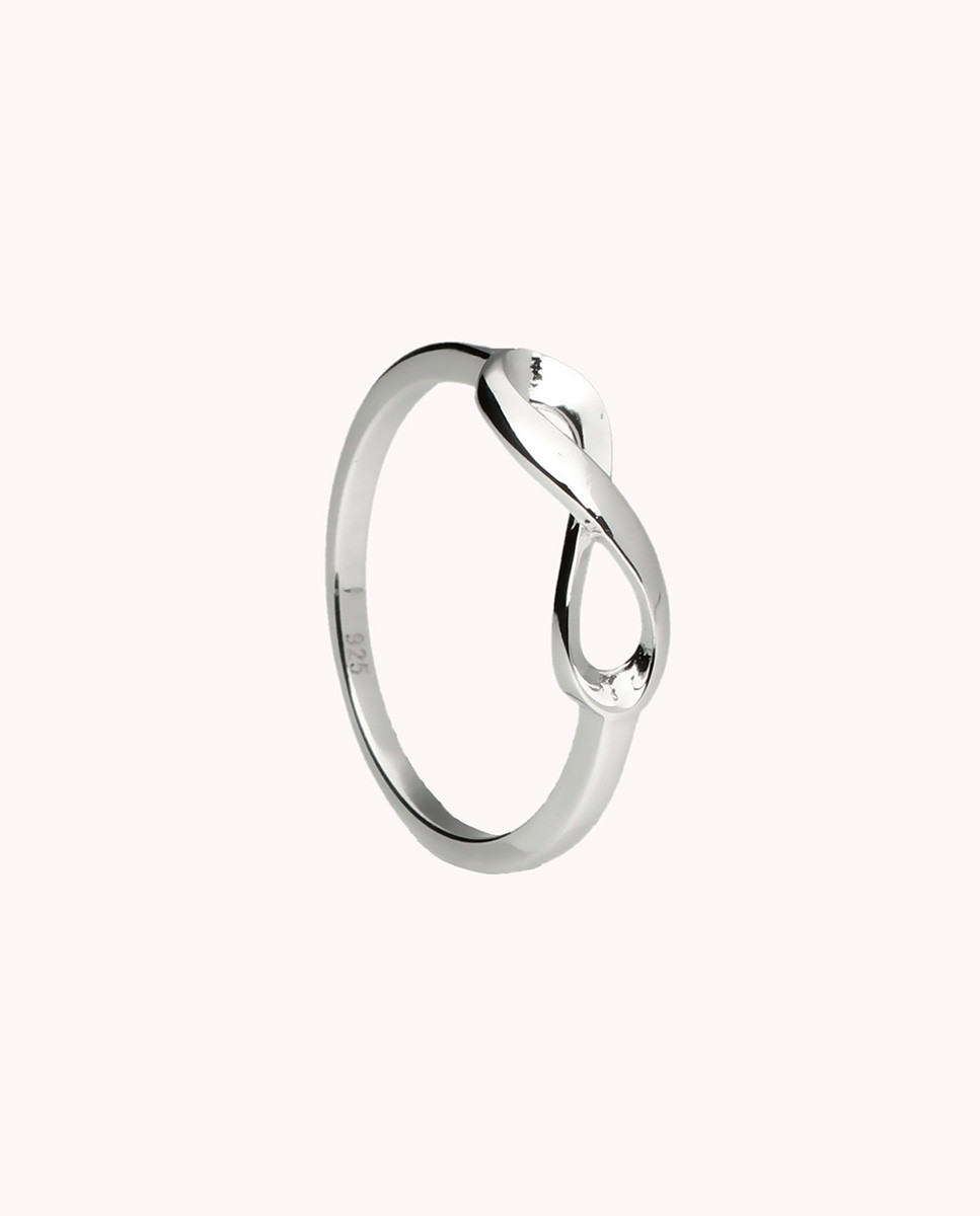 Anillo de plata de ley 925 bañada en rodio con infinito.