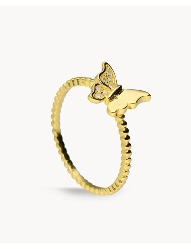 Anillo de plata de ley 925 bañado en oro con motivo mariposa y circonitas blancas.