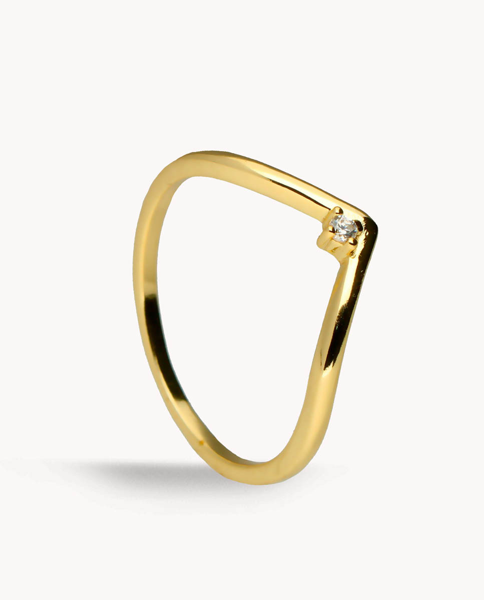 Anillo de plata de ley 925 bañada en oro 18K con detalle central de una circonita blanca.