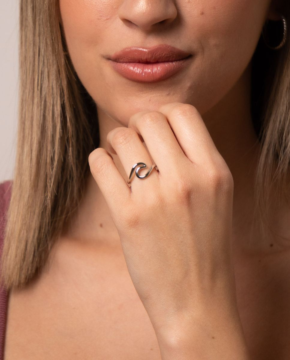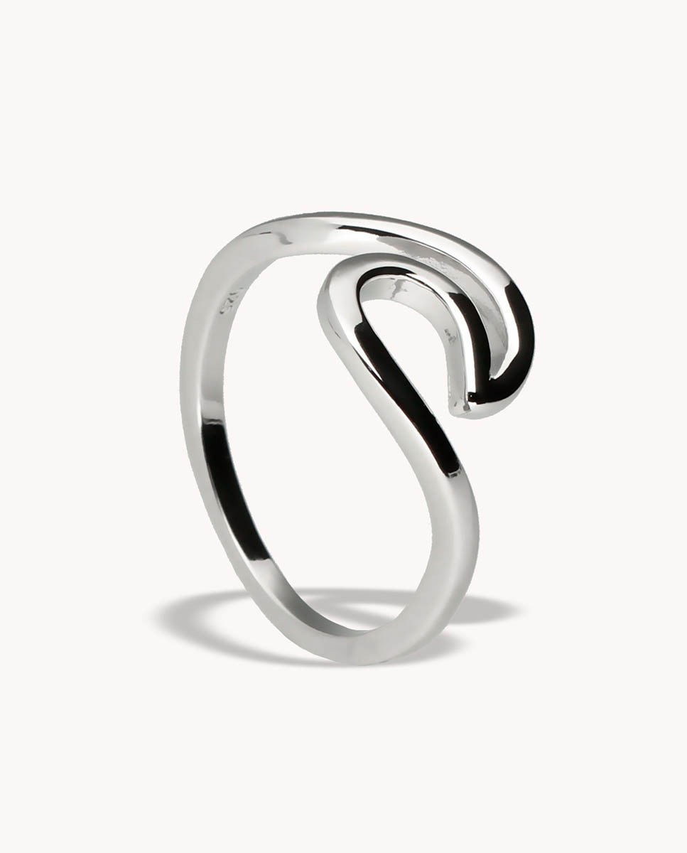 Anillo de plata de ley 925 bañada en rodio, con motivo central ola.
