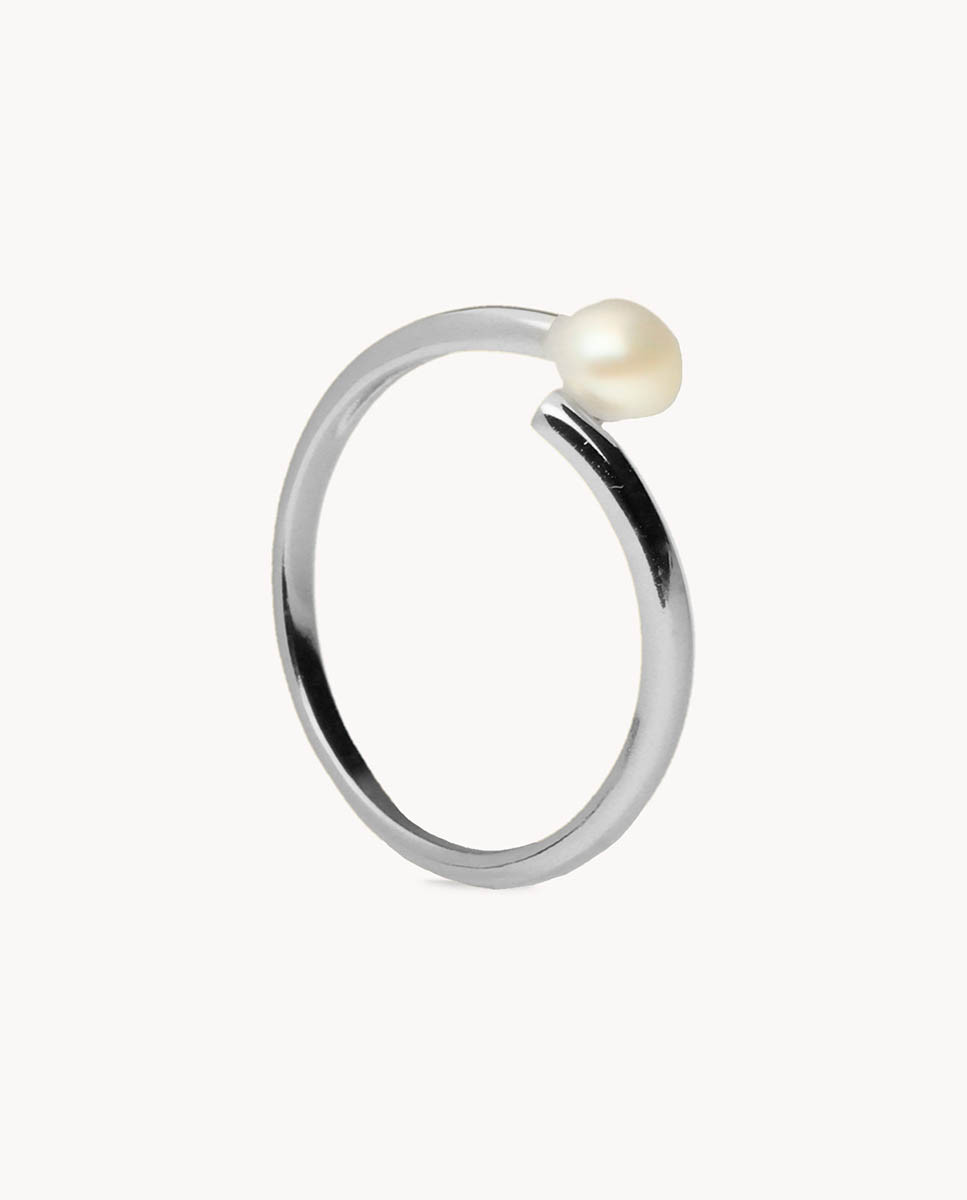 Anillo de plata de ley 925 bañada en rodio con perla cultivada de 5 mm de diámetro.