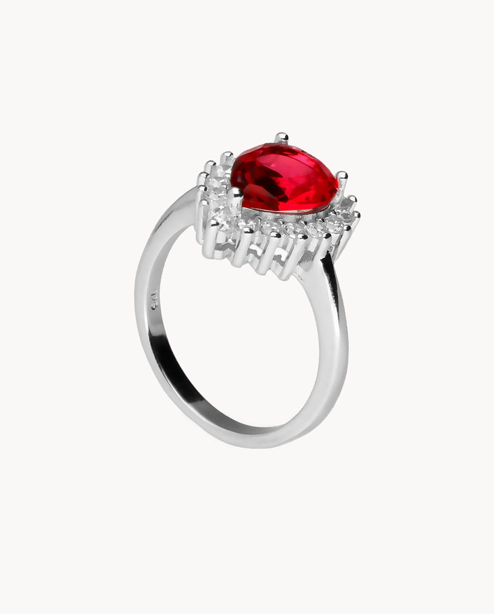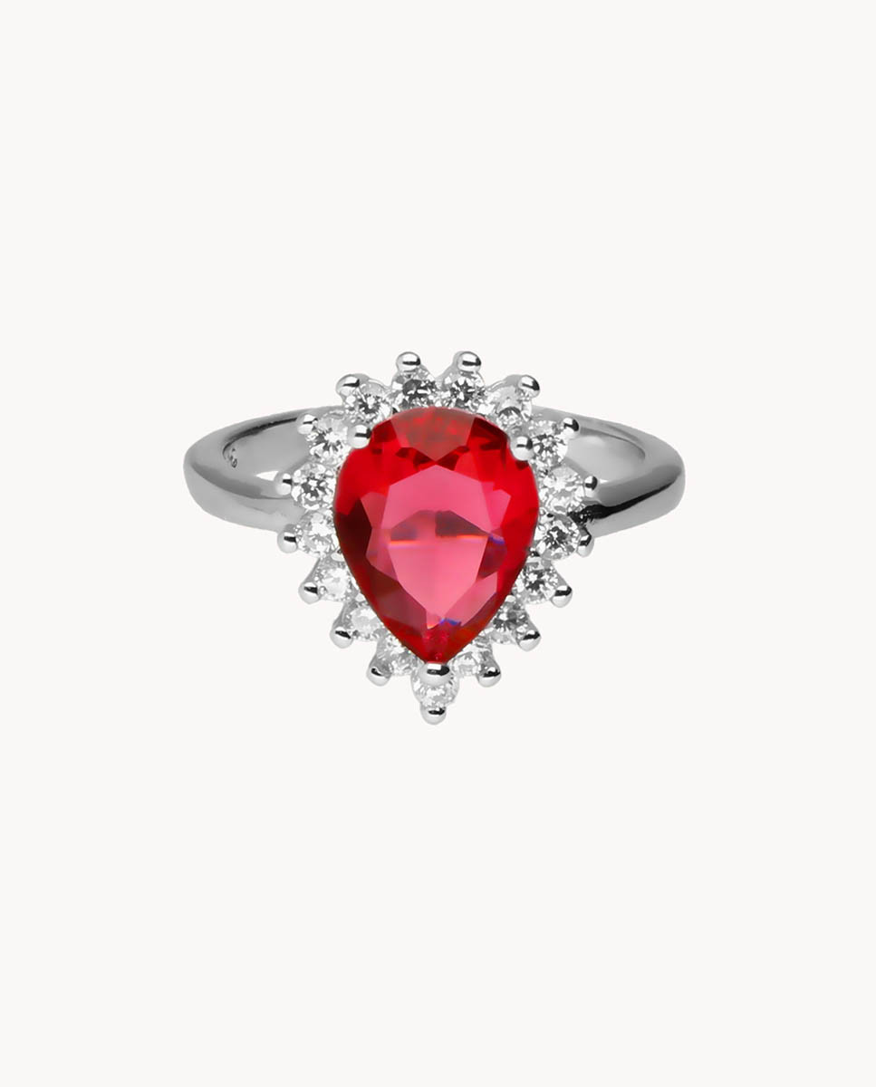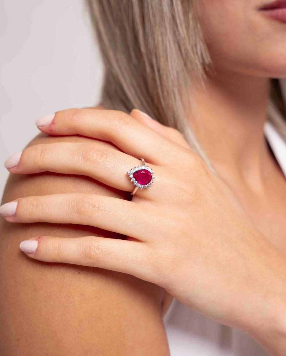 Anillo rubí gota de plata de ley 925 bañada en rodio