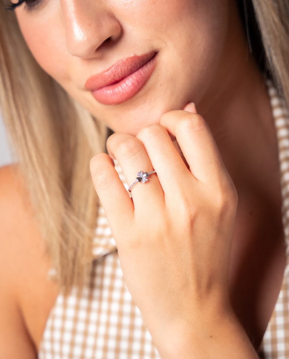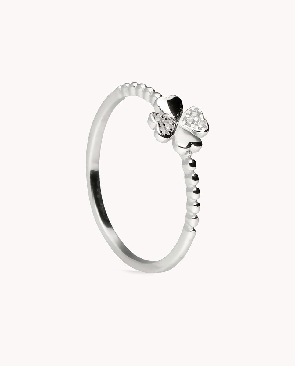 Anillo de plata de ley 925 bañada en rodio con trébol y circonitas blancas. Tu anillo de la suerte