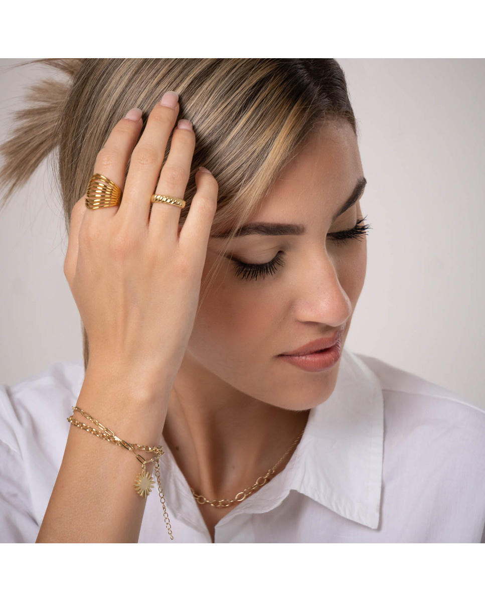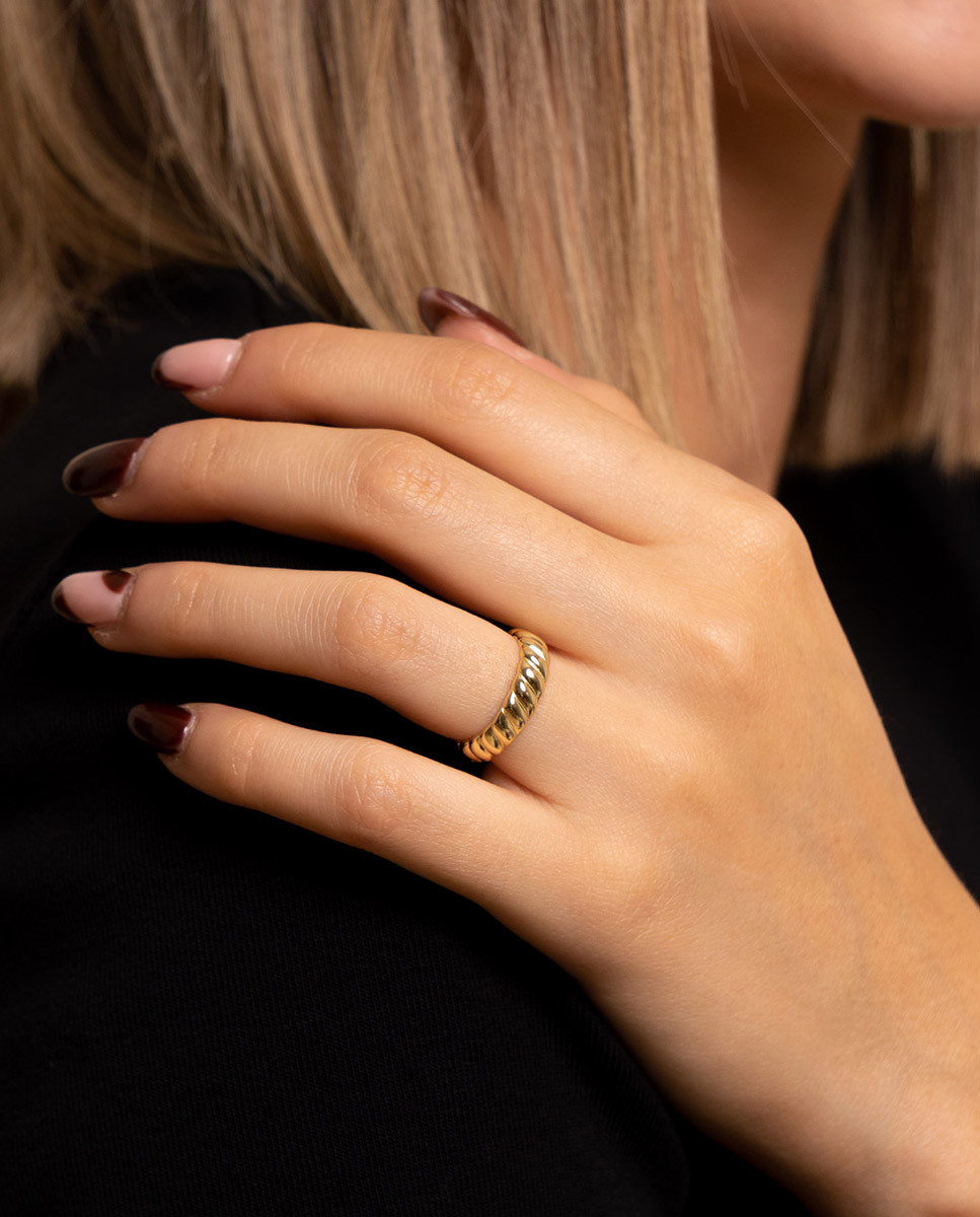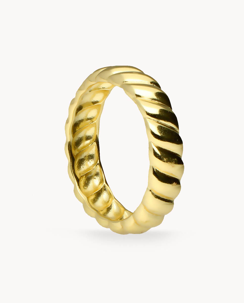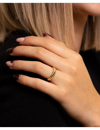 Anillo de plata de ley 925 bañada en oro de 18K con diseño trenzado.