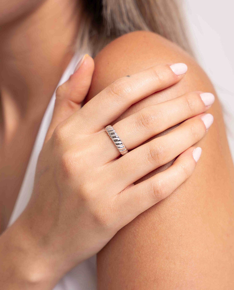 Anillo de plata de ley 925 bañada en rodio con diseño en textura.
