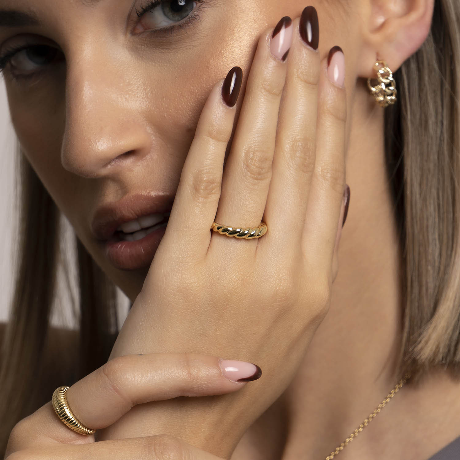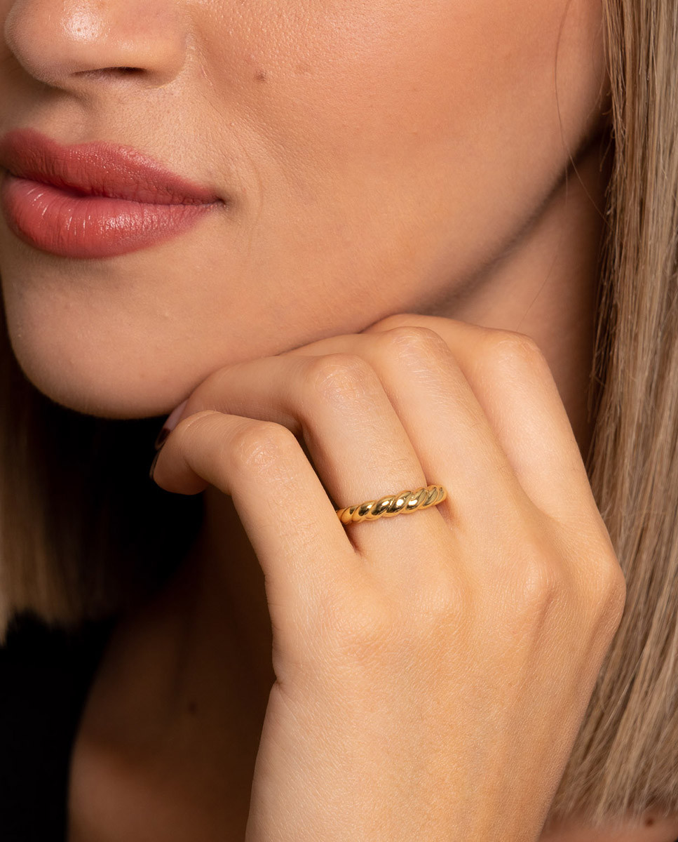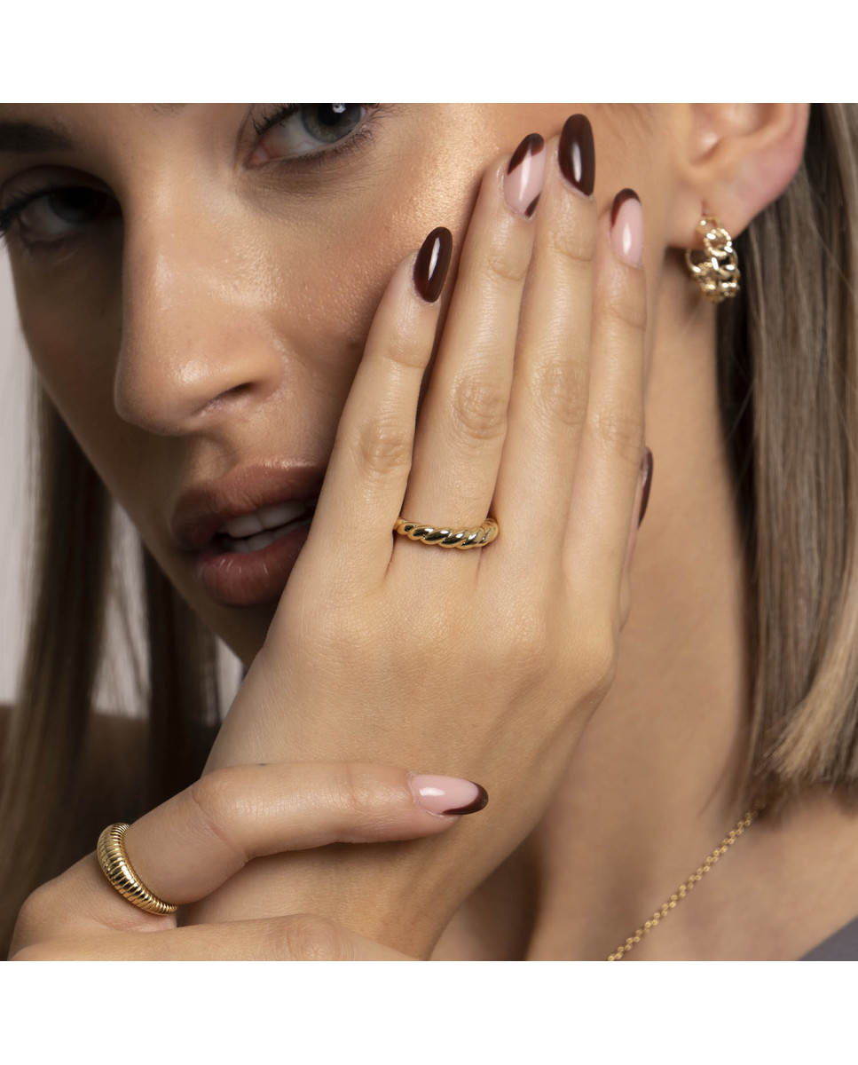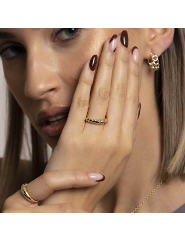 Anillo de plata de ley 925 bañada en oro de 18K con diseño trenzado.