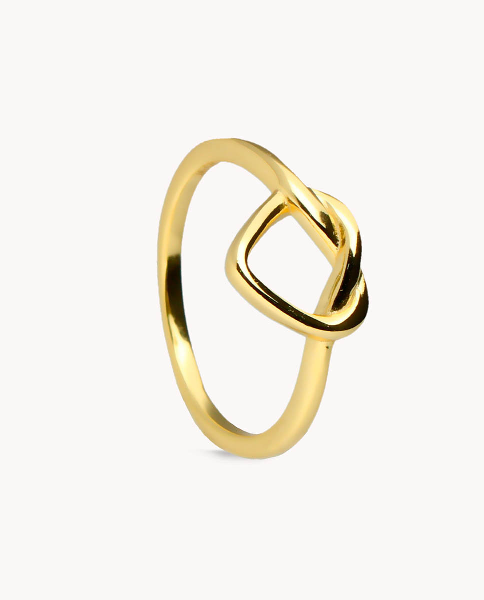 Anillo de plata de ley 925 bañada en oro 18K con corazón en nudo.