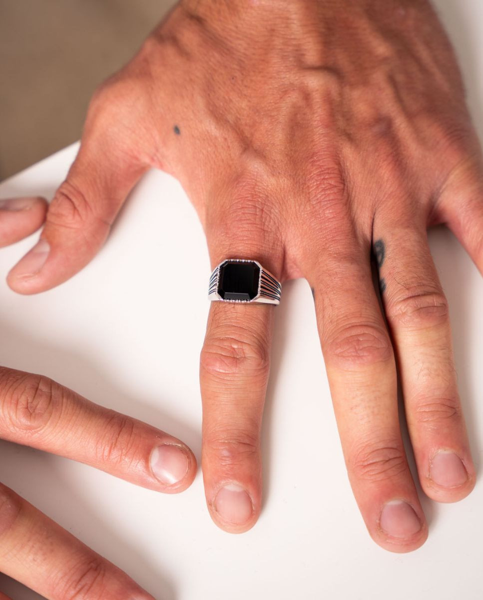 Anillo sello ónix sombra de plata de ley 925 bañada en rodio